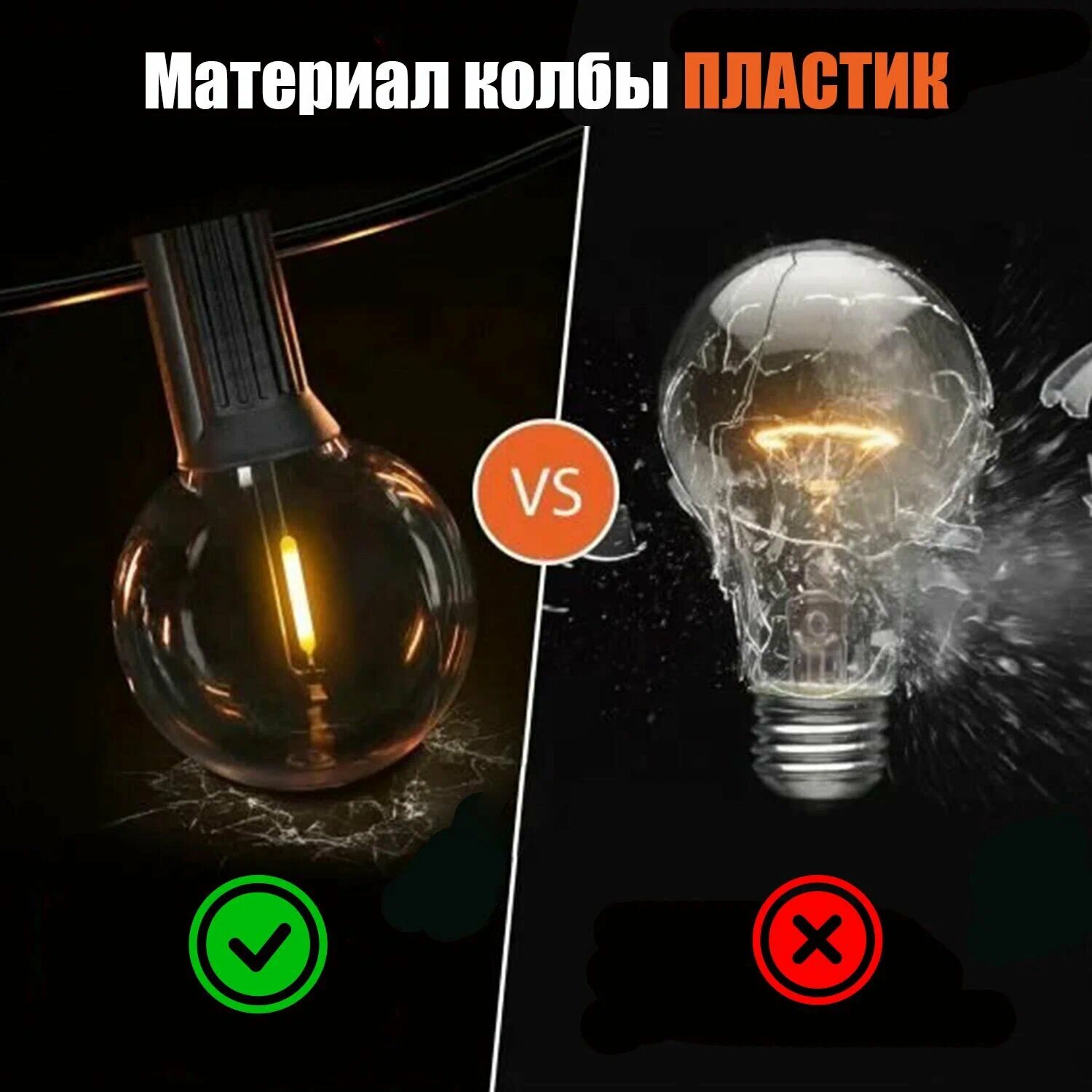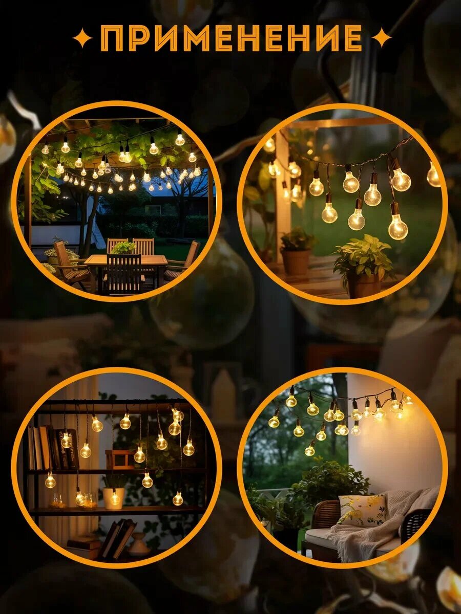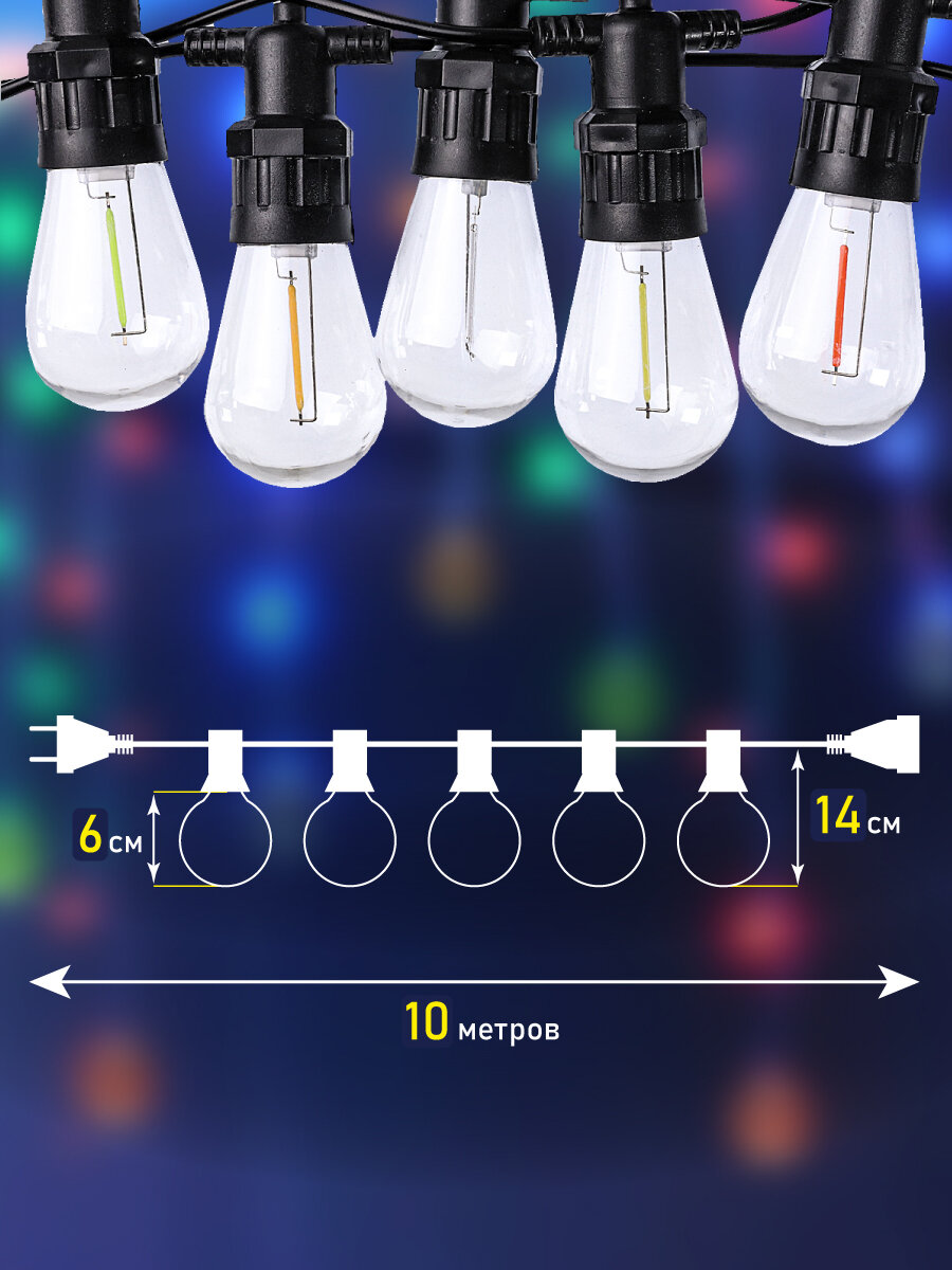 Светодиодная уличная гирлянда "ретро" 10 метров, 20 лампочек, теплый свет. Для улицы и помещения. Новогодний декор