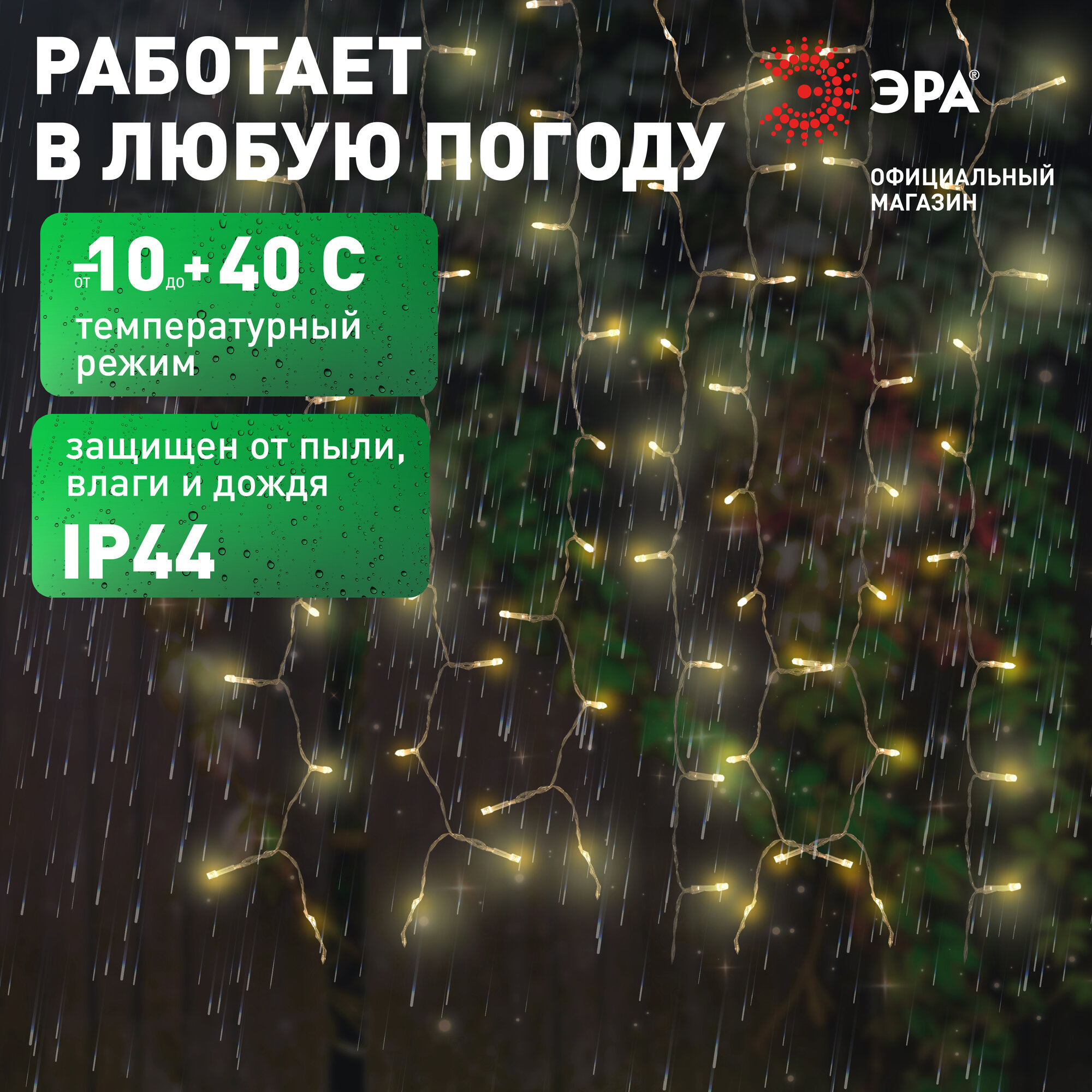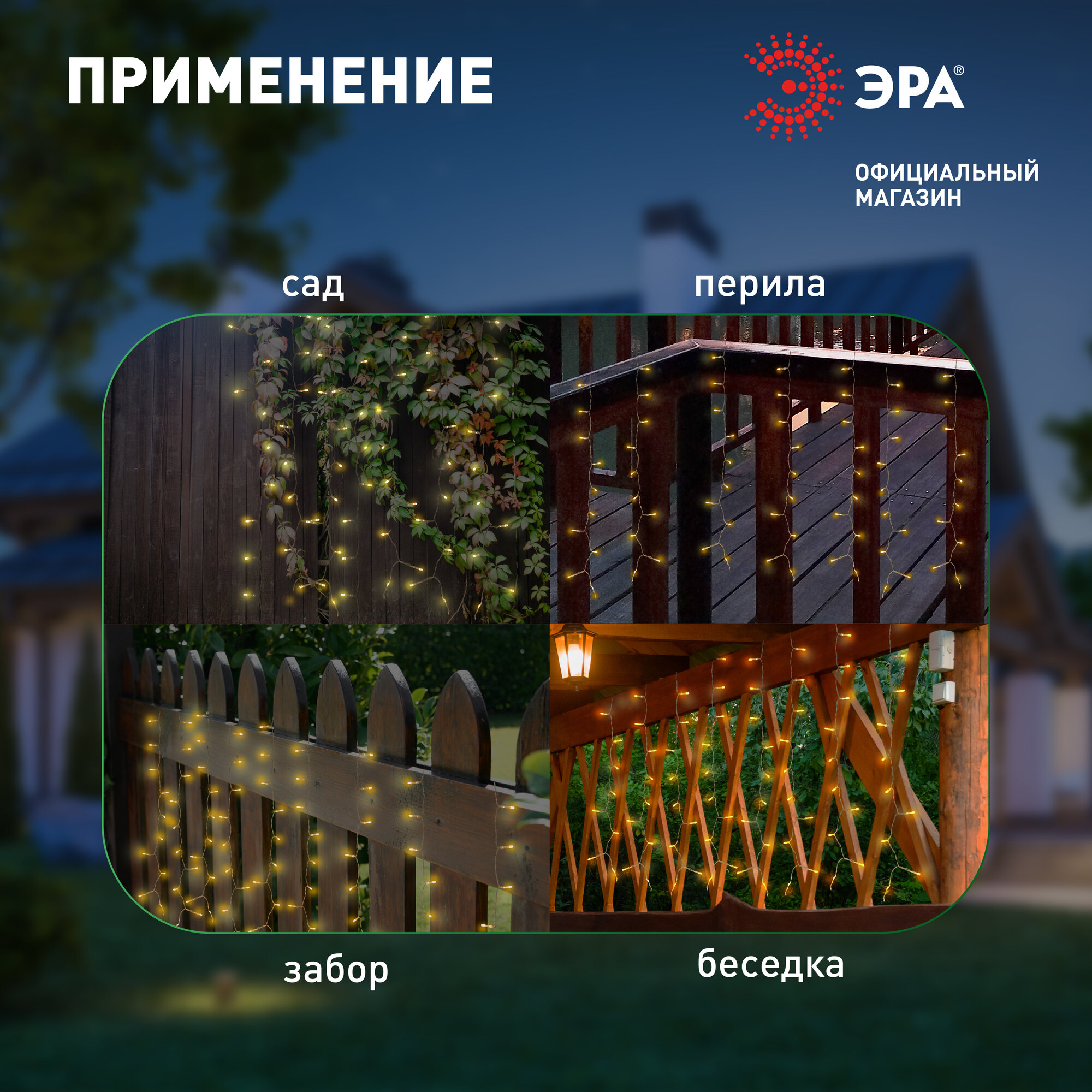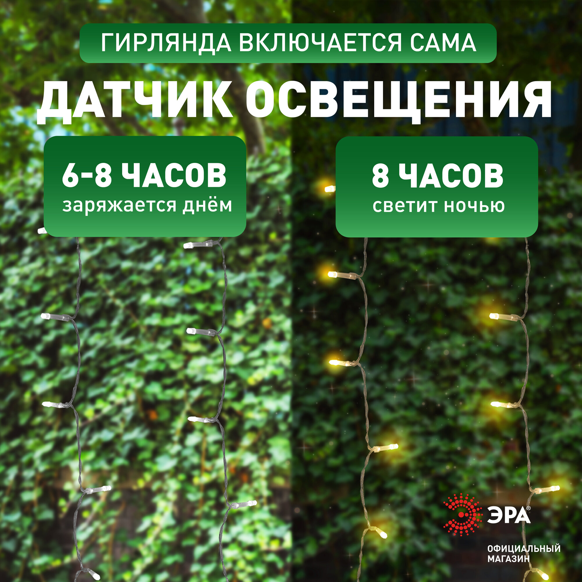 Купить Гирлянда светодиодная уличная ретро ЭРА ERASF22-41 Занавес на солнечной батарее садовая, 192 LED, 1.5 х 1.5 м