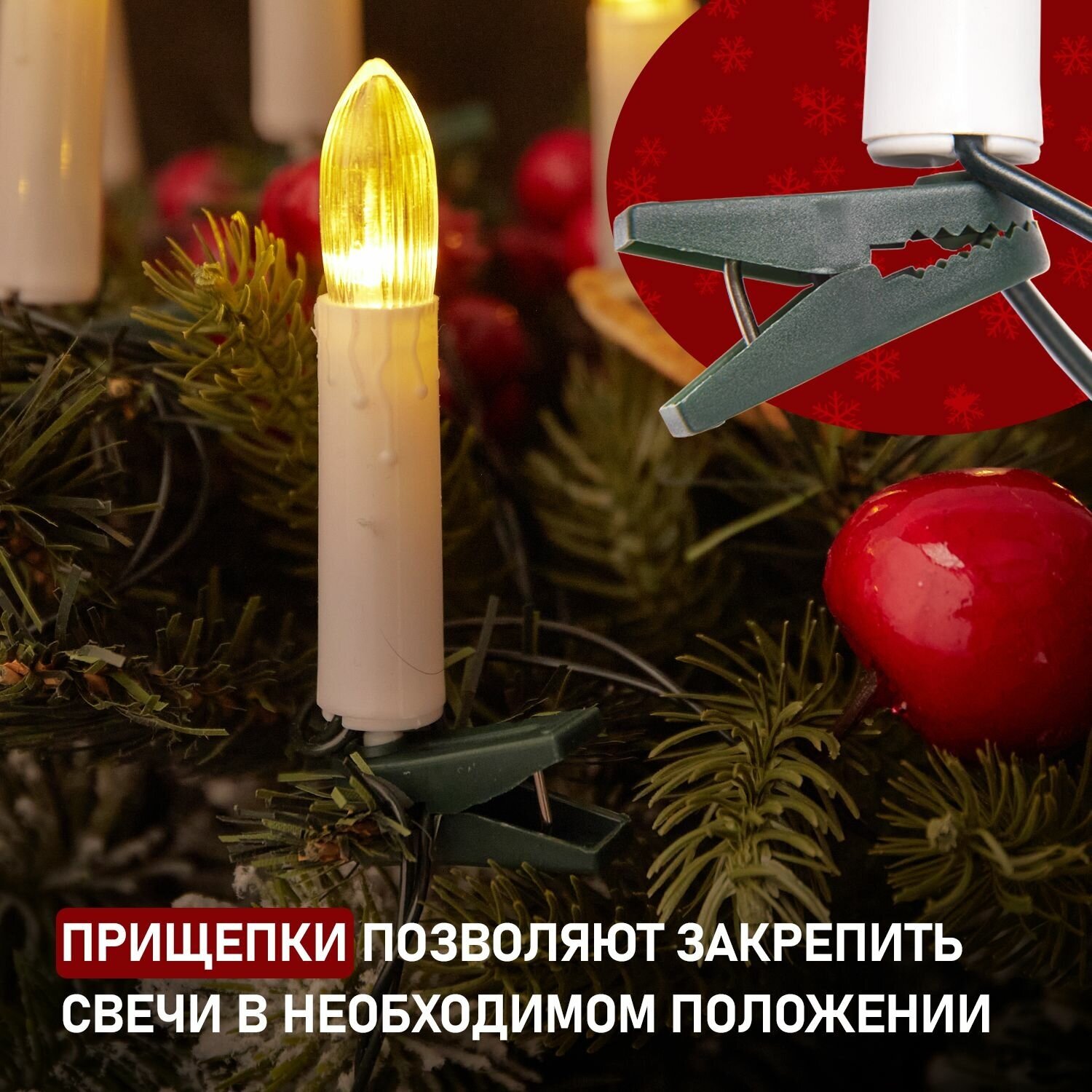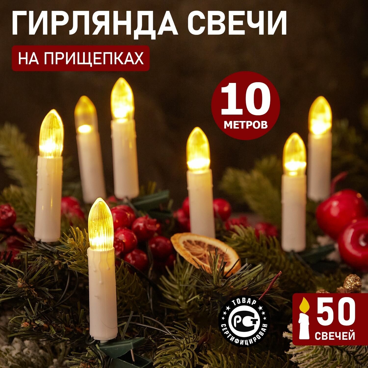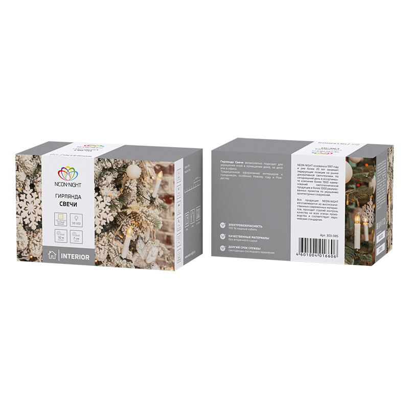 Светодиодная гирлянда Neon-night "Свечи" 10 м, 50 насадок тепло-белого свечения, темно-зеленый ПВХ интересное: