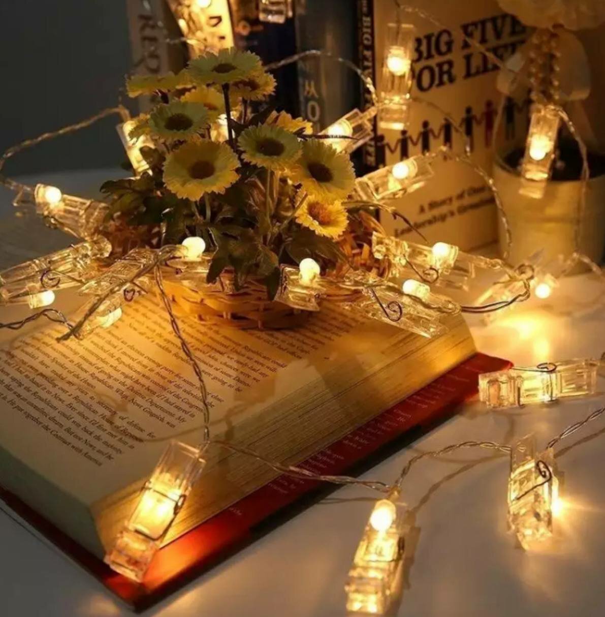 Электрогирлянда интерьерная / Прищепка Светодиодная 50 ламп, 5 м, питание 3 AA, 1 шт интересное: