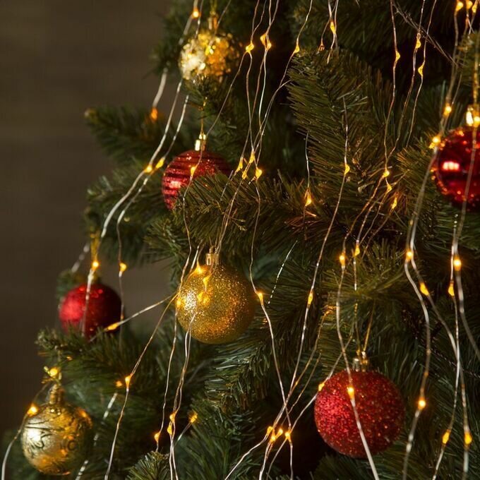 Купить Электрогирлянда интерьерная нить роса 20 м, серебристый провод / Гирлянда светодиодная, питание от сети 220B, желтый свет