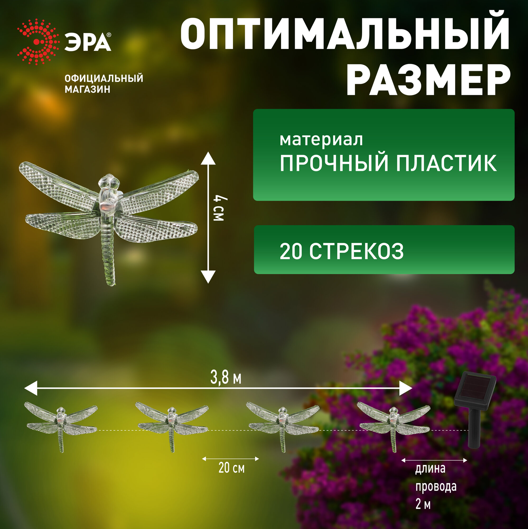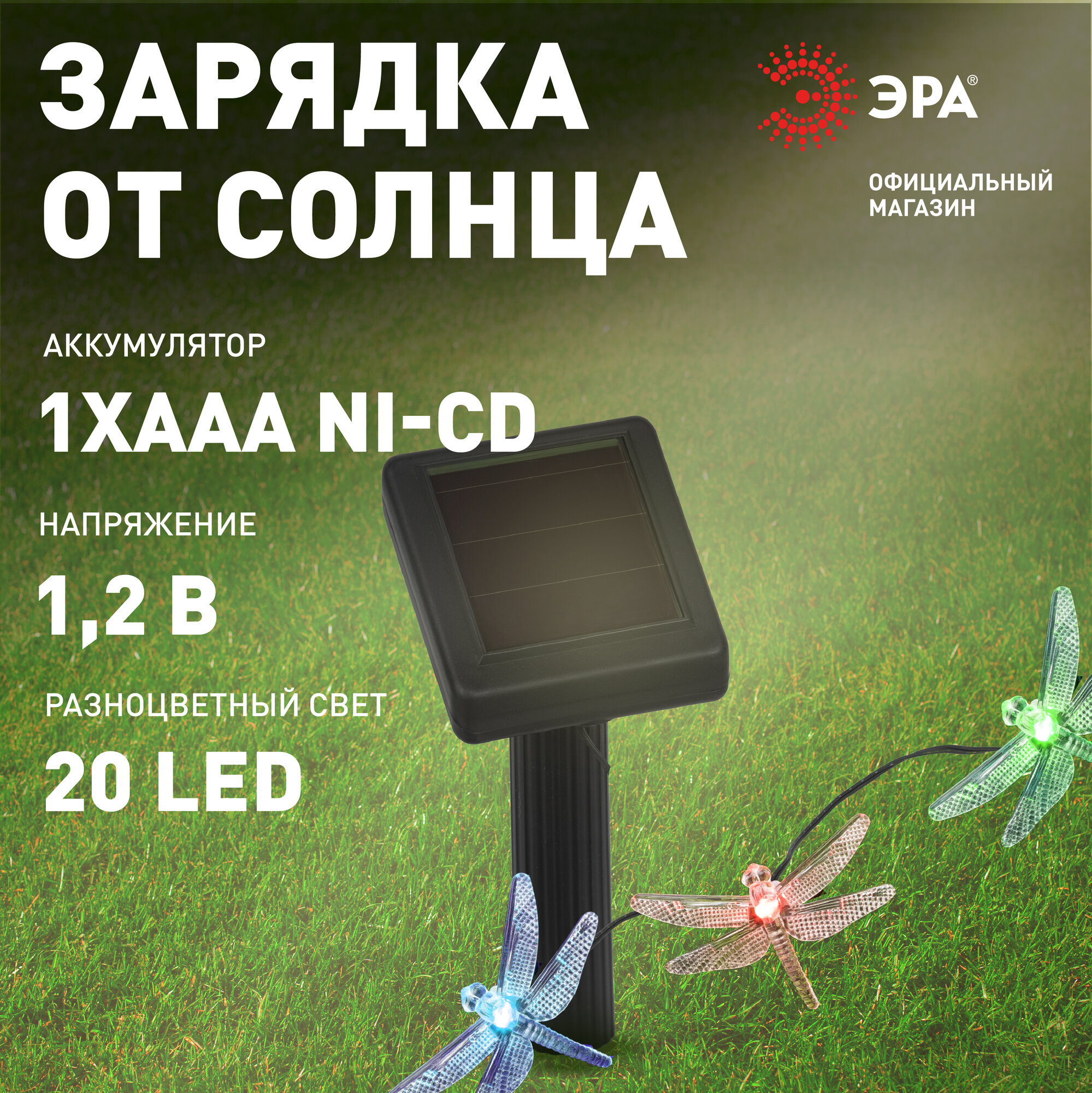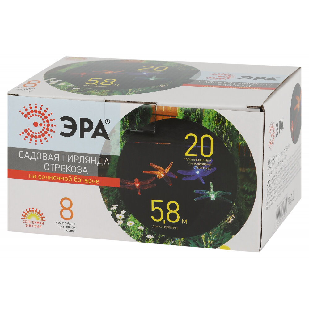 Купить Гирлянда светодиодная уличная ретро ЭРА ERASF22-16 Стрекоза на солнечной батарее садовая , 20 LED, 5.8 м