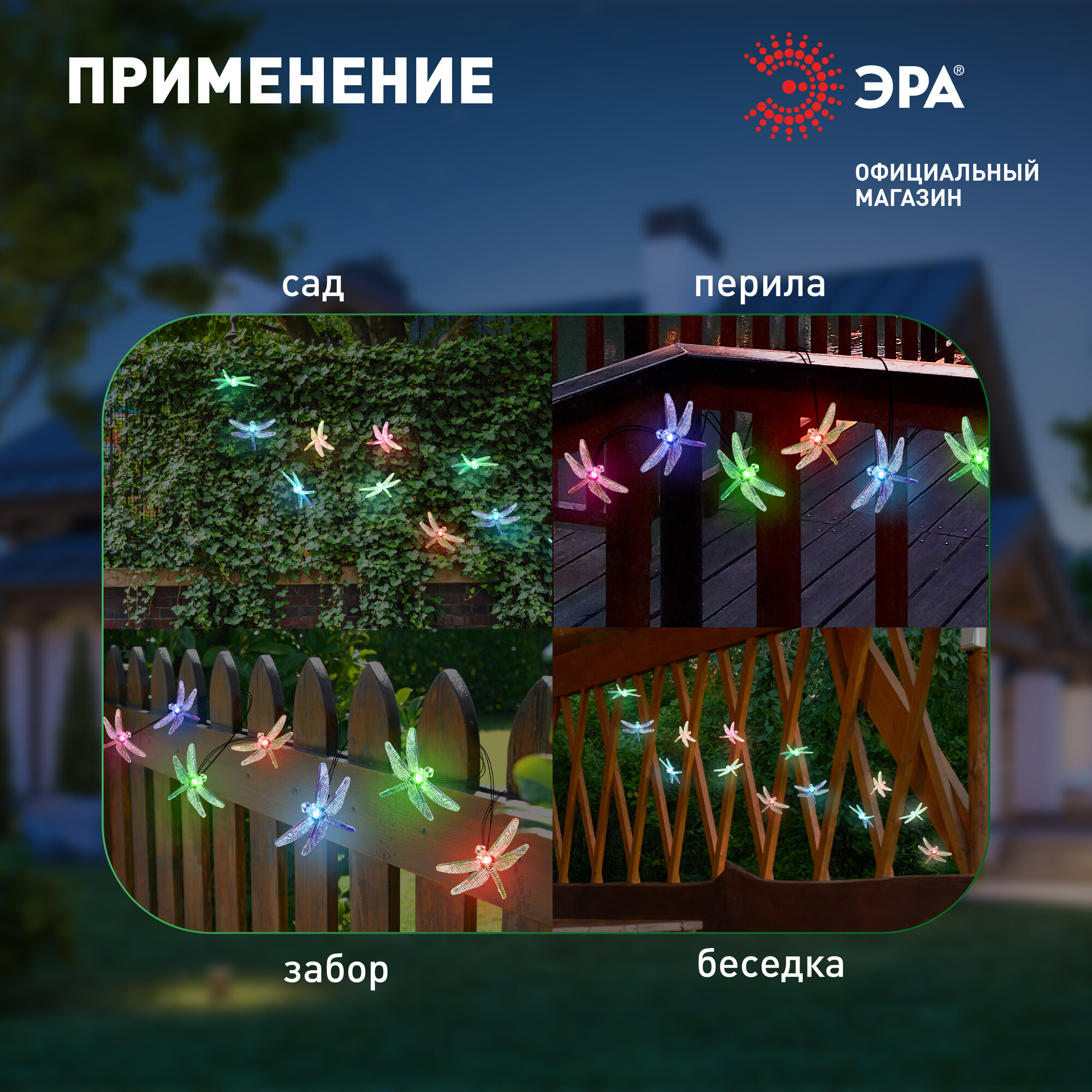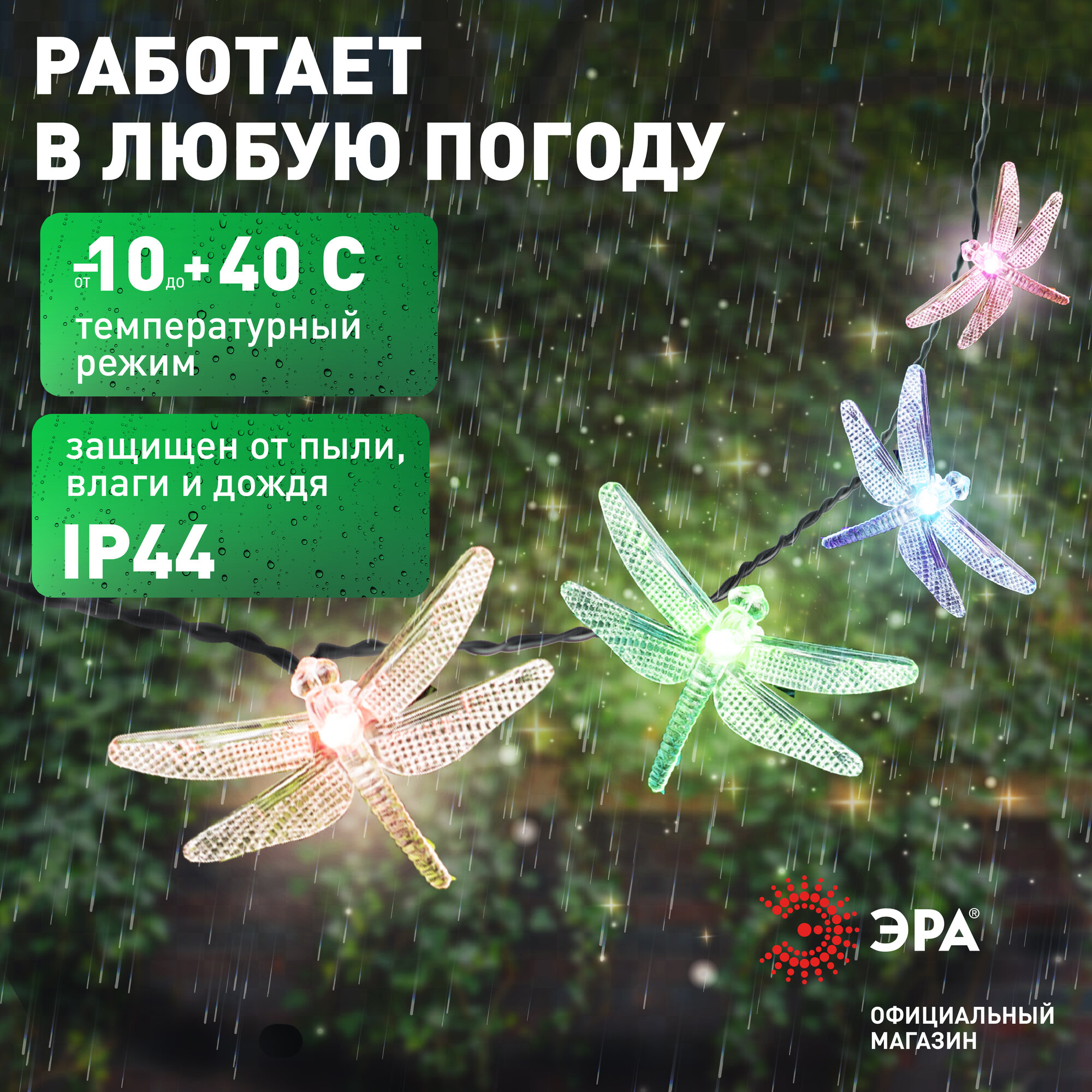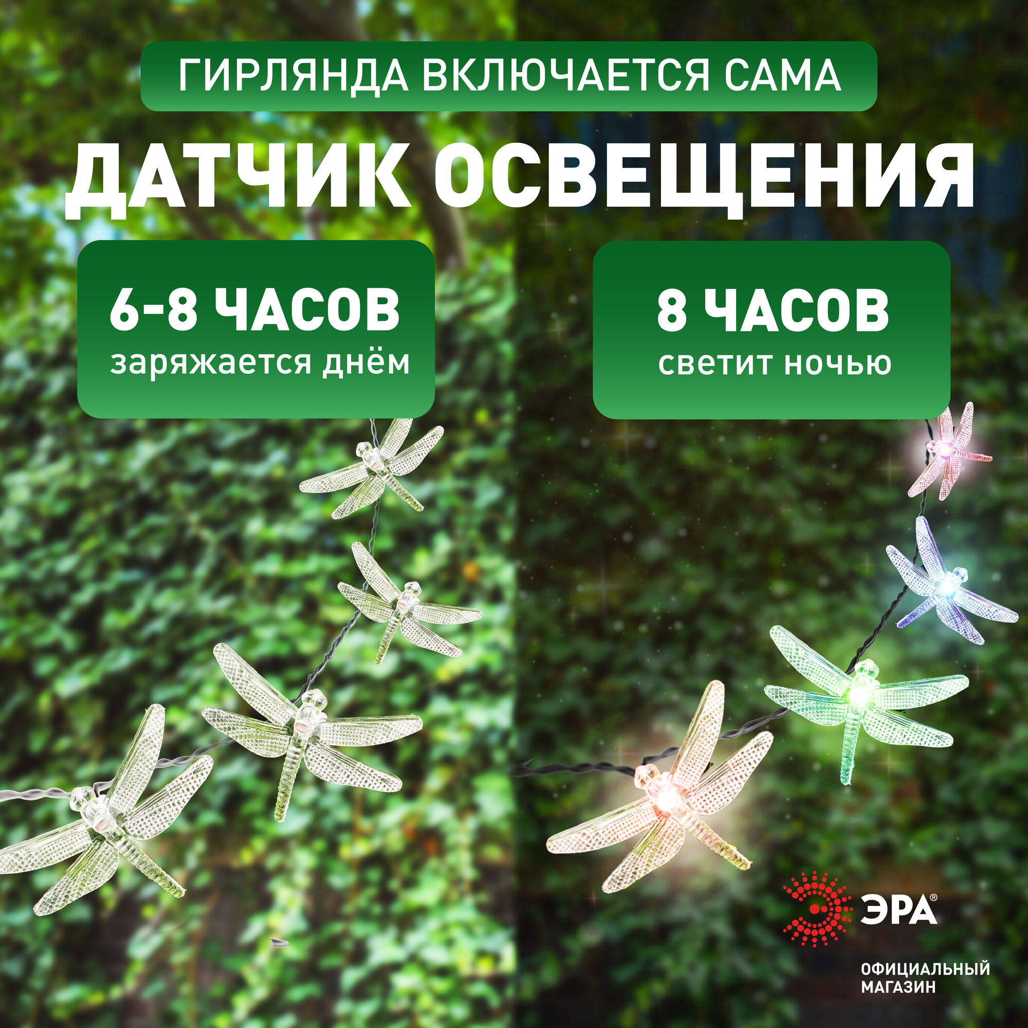 Купить Гирлянда светодиодная уличная ретро ЭРА ERASF22-16 Стрекоза на солнечной батарее садовая , 20 LED, 5.8 м