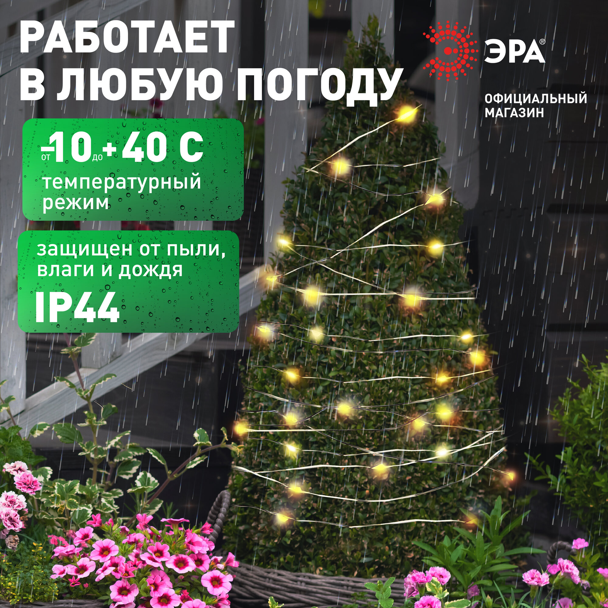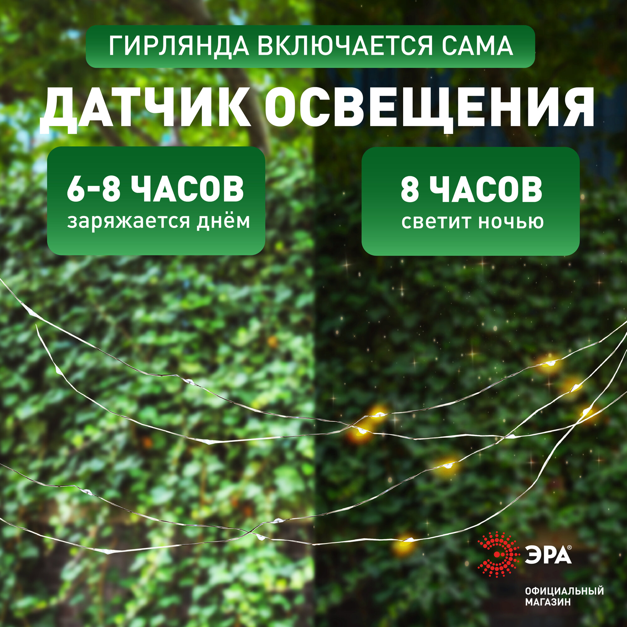 Купить Гирлянда светодиодная уличная ретро ЭРА ERASF22-42 Нить на солнечной батарее садовая, 100 microLED, 10 м