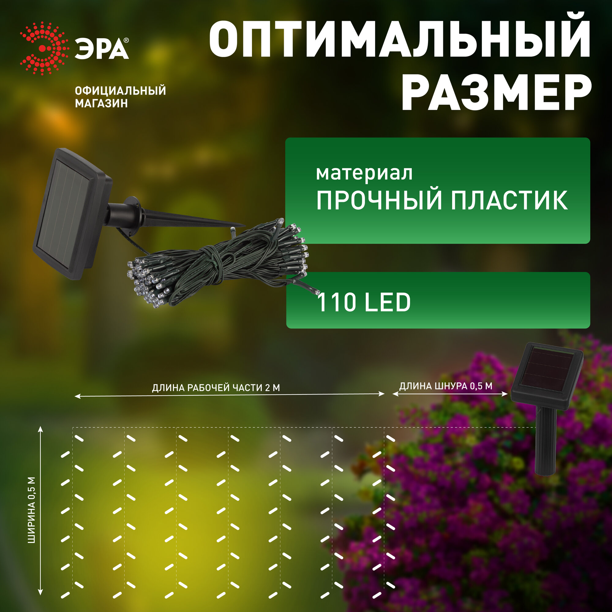 Гирлянда светодиодная уличная ретро ЭРА ERAUF024-16 Сеть на солнечной батарее садовая 150 LED, 2 м х 1,35 м