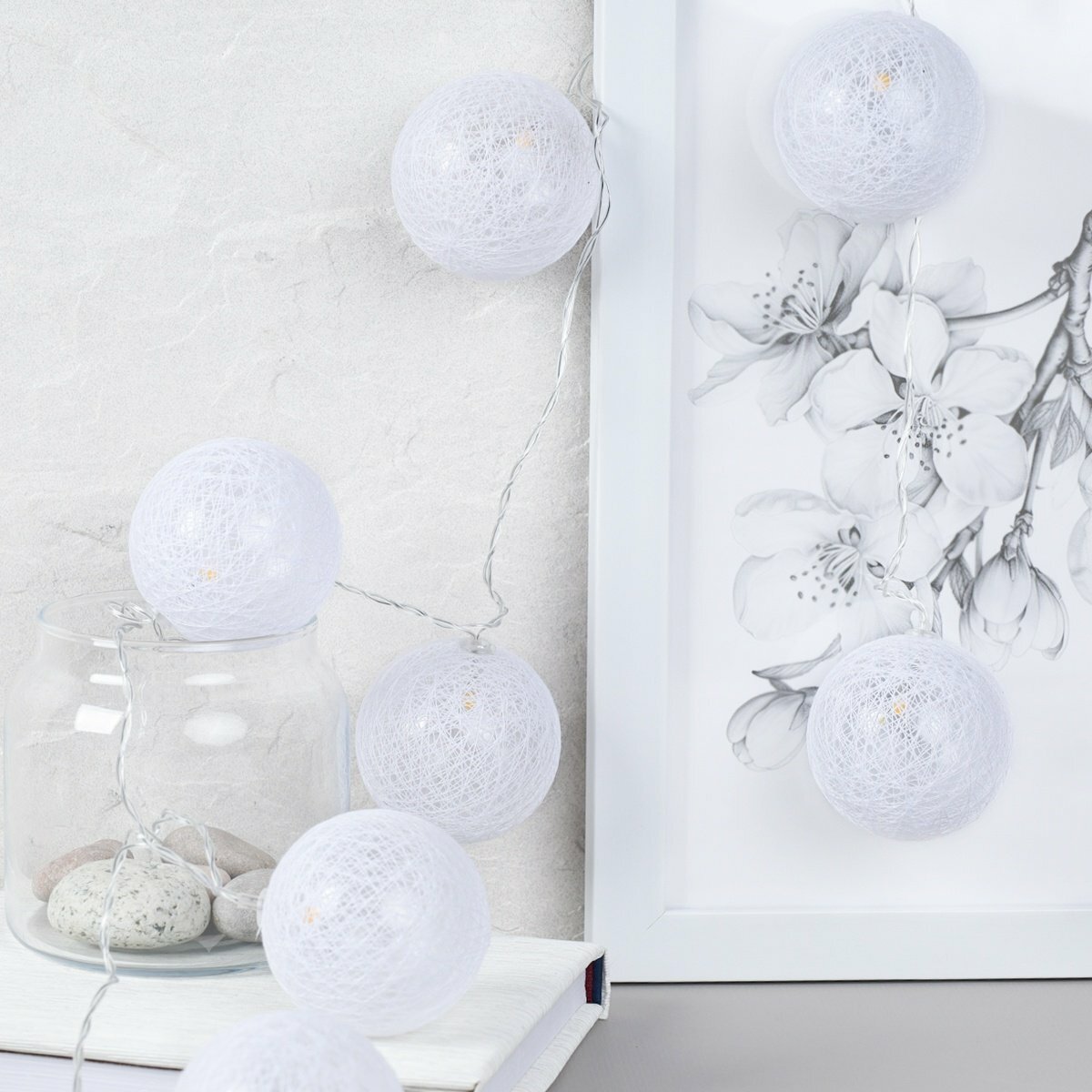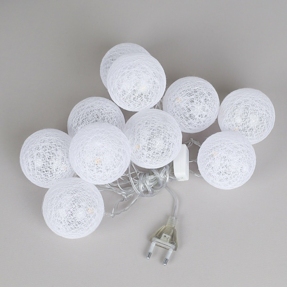 Купить Электрогирлянда интерьерная новогодняя "Шарики", гирлянда светодиодная для декора, 10 LED ламп, 2 м, теплый белый свет, питание от сети 220В / 1 шт.