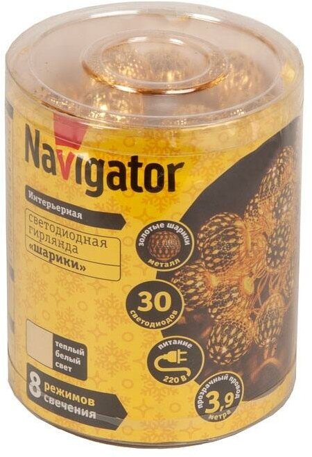 Гирлянда Navigator 14 041 золотые шарики, теплый белый свет, 3.9 м интересное: