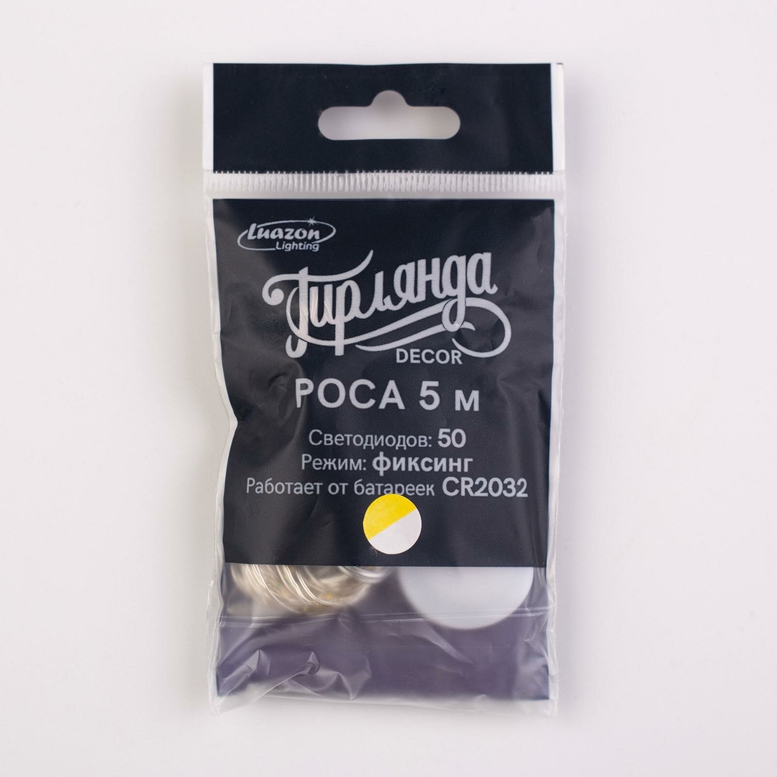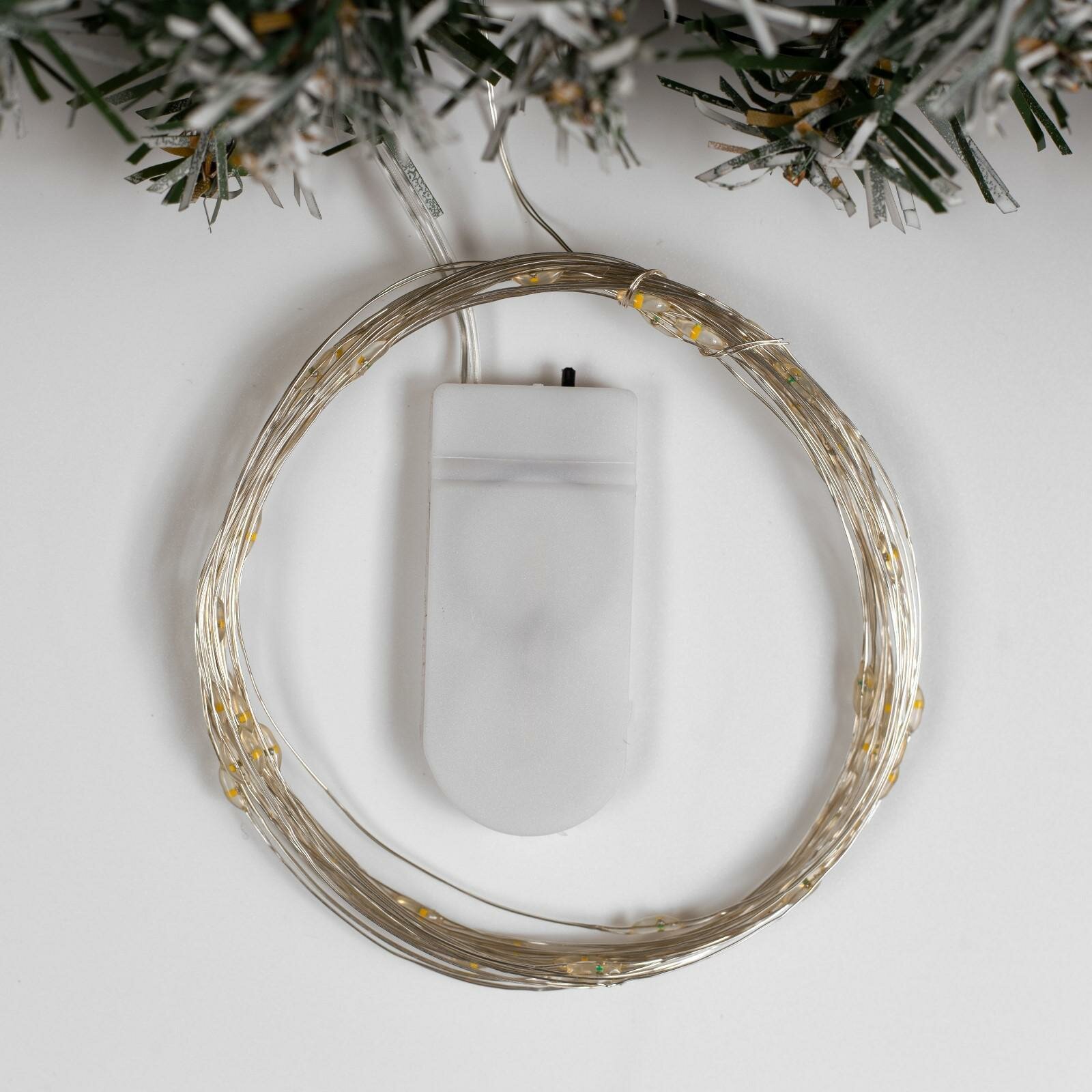 Купить Гирлянда «Нить» 5 м роса, IP20, серебристая нить, 50 LED, свечение тёплое белое, CR2032х2, 2433894