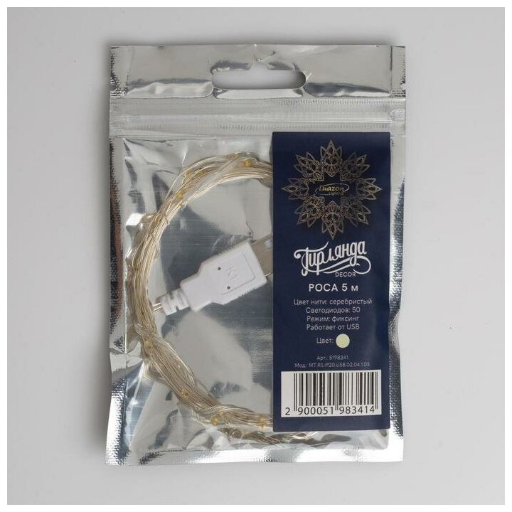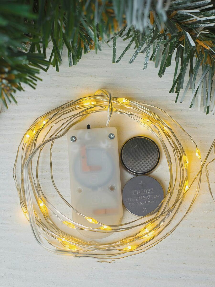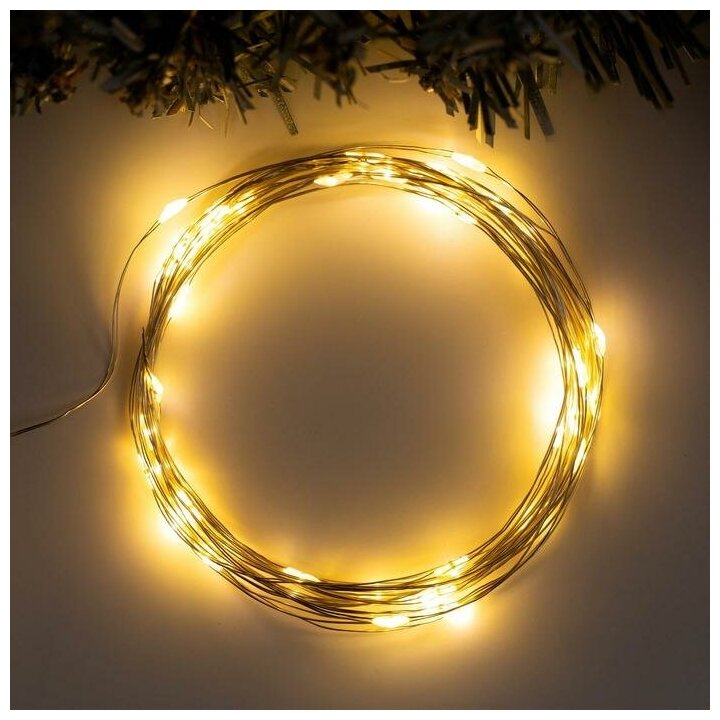 Гирлянда «Нить» 5 м роса, IP20, серебристая нить, 50 LED, свечение тёплое белое, CR2032х2, 2433894 интересное: