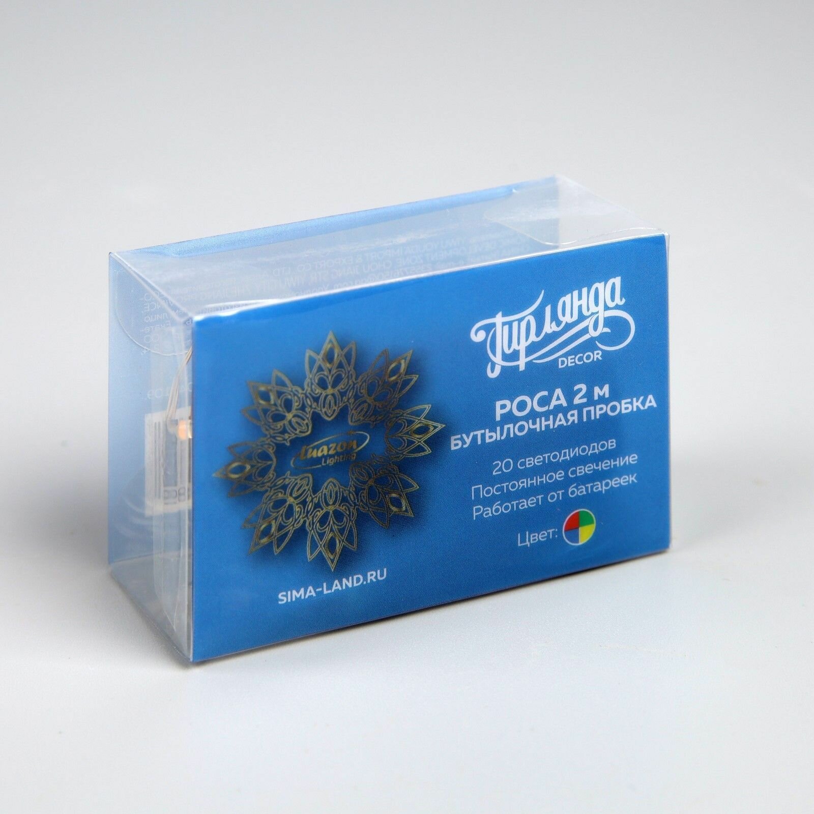 Купить Электрогирлянда Luazon Lighting - Нить роса 2м, с пробкой, 20 цветных LED, LR44х3, 1 шт