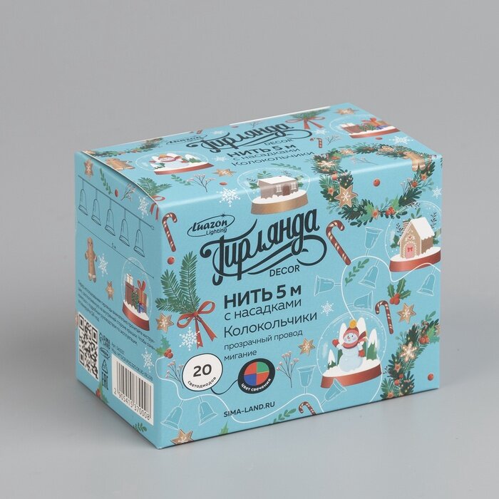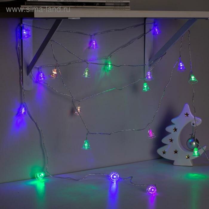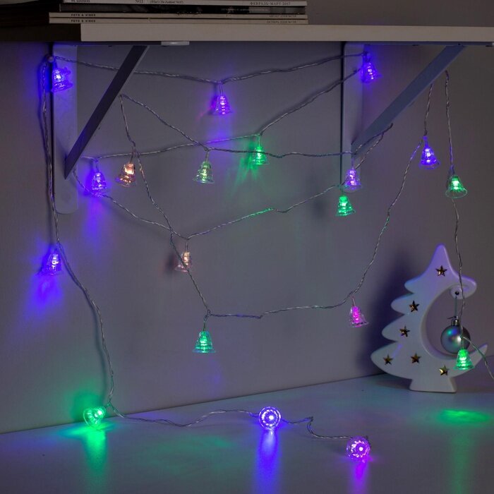 Купить Гирлянда «Нить» 5 м с насадками «Колокольчики», IP20, прозрачная нить, 20 LED, свечение мульти (RG/RB), мигание, 220 В