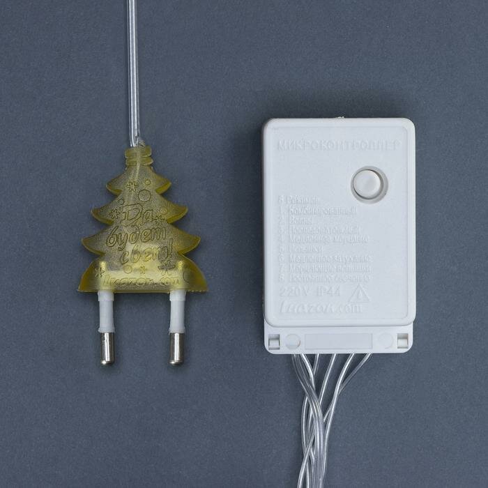 Купить Гирлянда Luazon Lighting Бахрома, 1,8х0,5 м, LED-48-220 В, 8 режимов, нить прозрачная, свечение желтое (3556833)