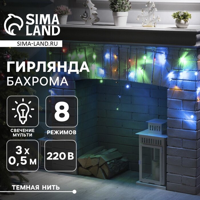 Купить Гирлянда «Бахрома» 3 × 0.5 м, IP20, тёмная нить, 80 LED, свечение мульти, 8 режимов, 220 В