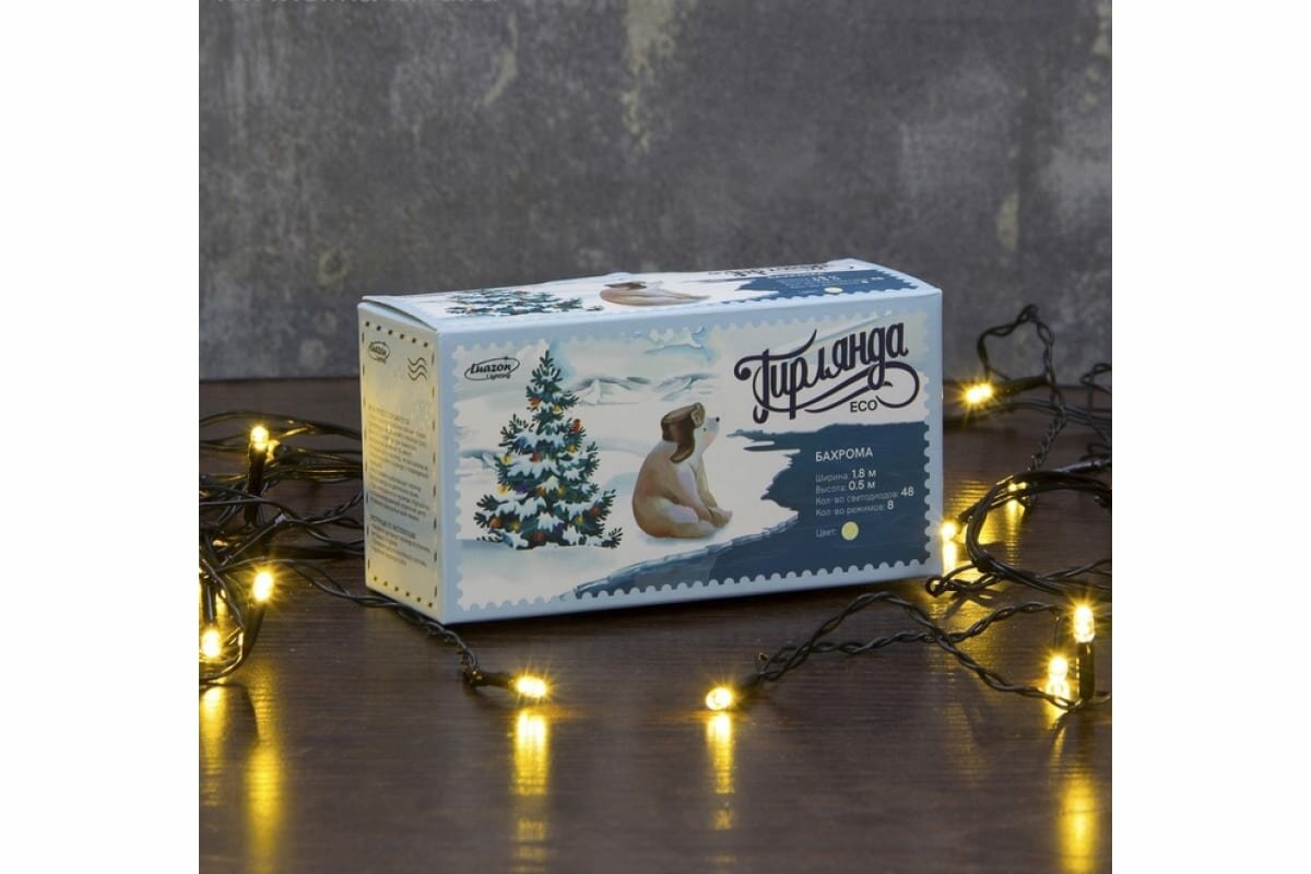 СохранитьГирлянда "Бахрома" 1.8 x 0.5 м, IP20, тёмная нить, 48 LED, свечение тёплое белое, 8 режимов, 220 В интересное: