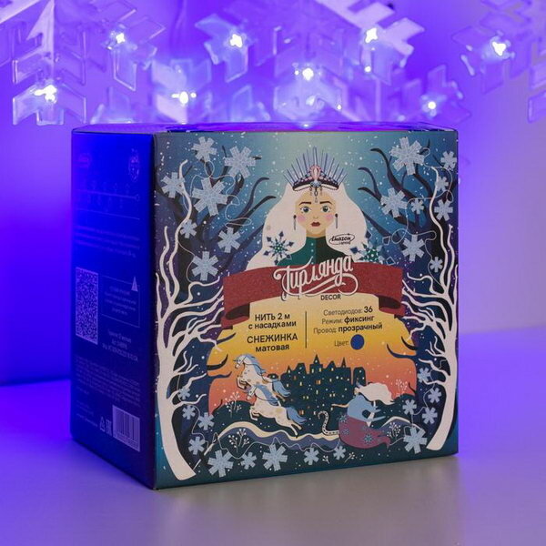 СохранитьГирлянда "Нить" 2 м с насадками "Снежинка матовая", IP20, прозрачная нить, 36 LED, свечение синее, 220 В интересное: