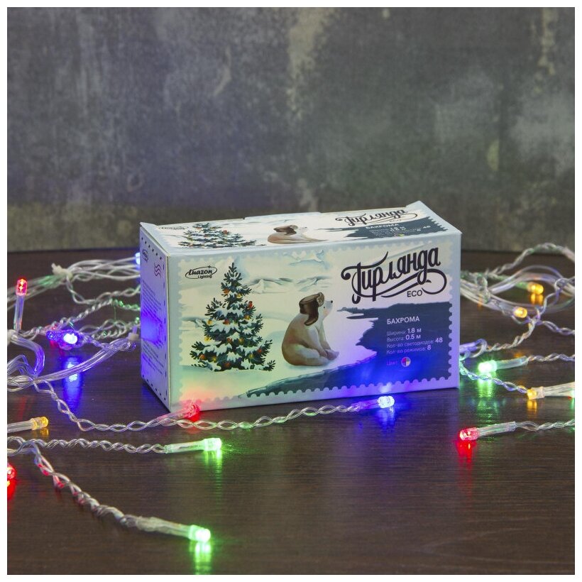 Гирлянда «Бахрома» 1.8 × 0.5 м, IP20, тёмная нить, 48 LED, свечение мульти, 8 режимов, 220 В