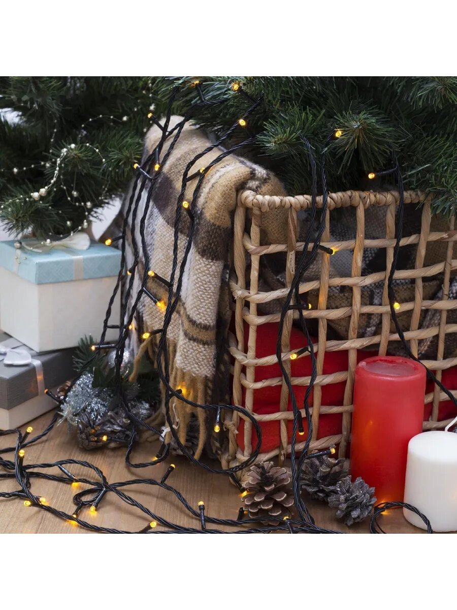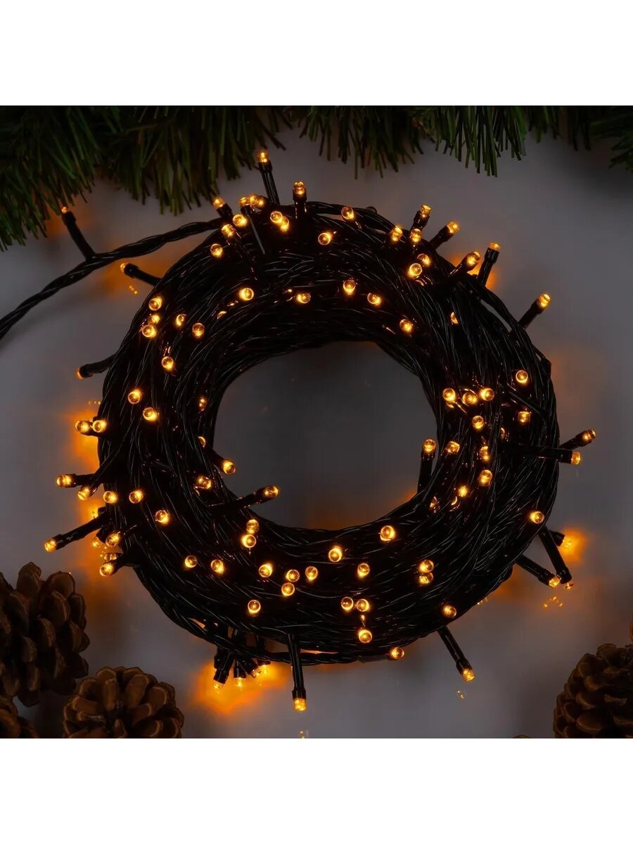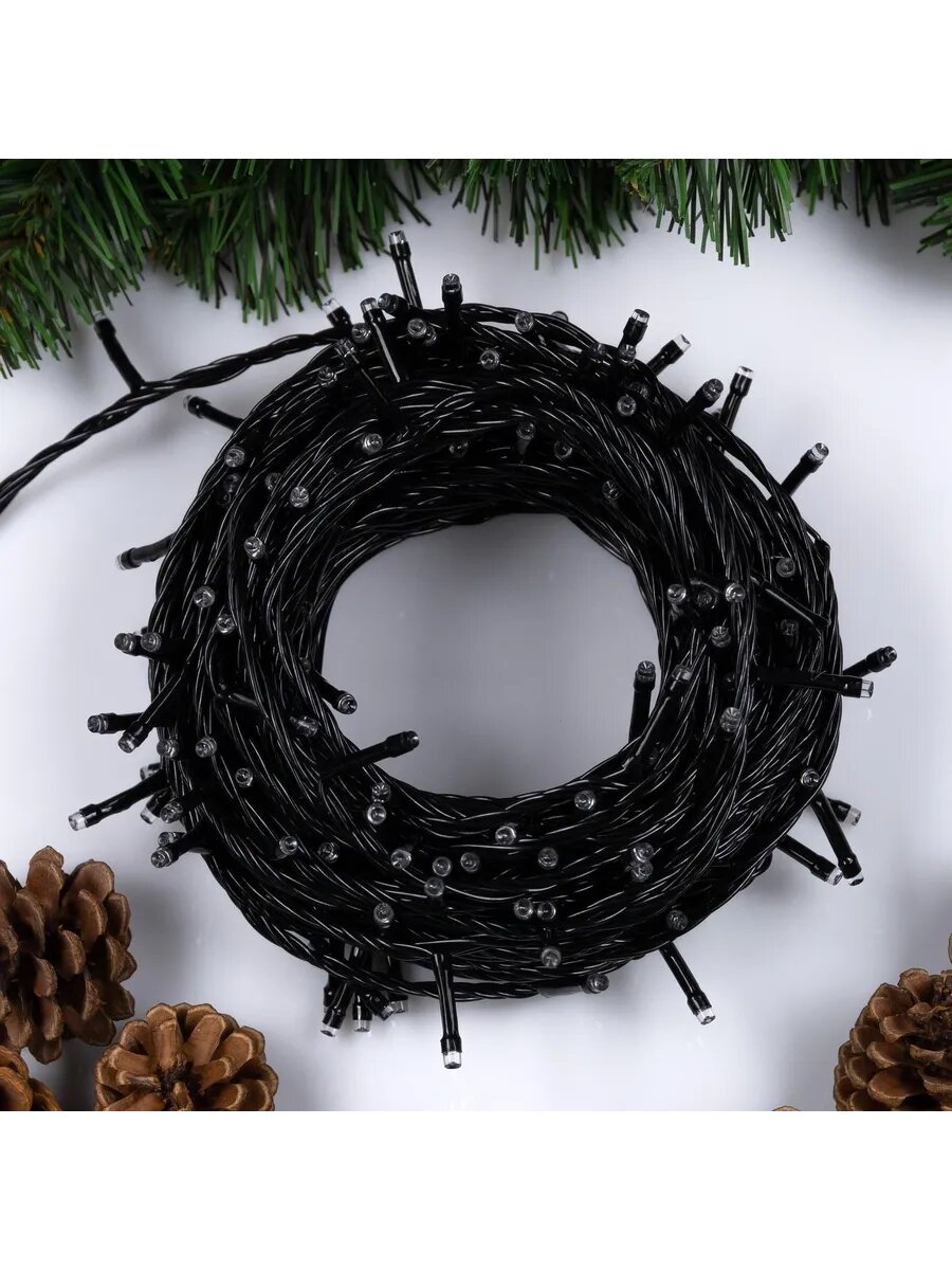 Гирлянда «Нить» 10 м, IP20, тёмная нить, 100 LED, свечение жёлтое, 8 режимов, 220 В