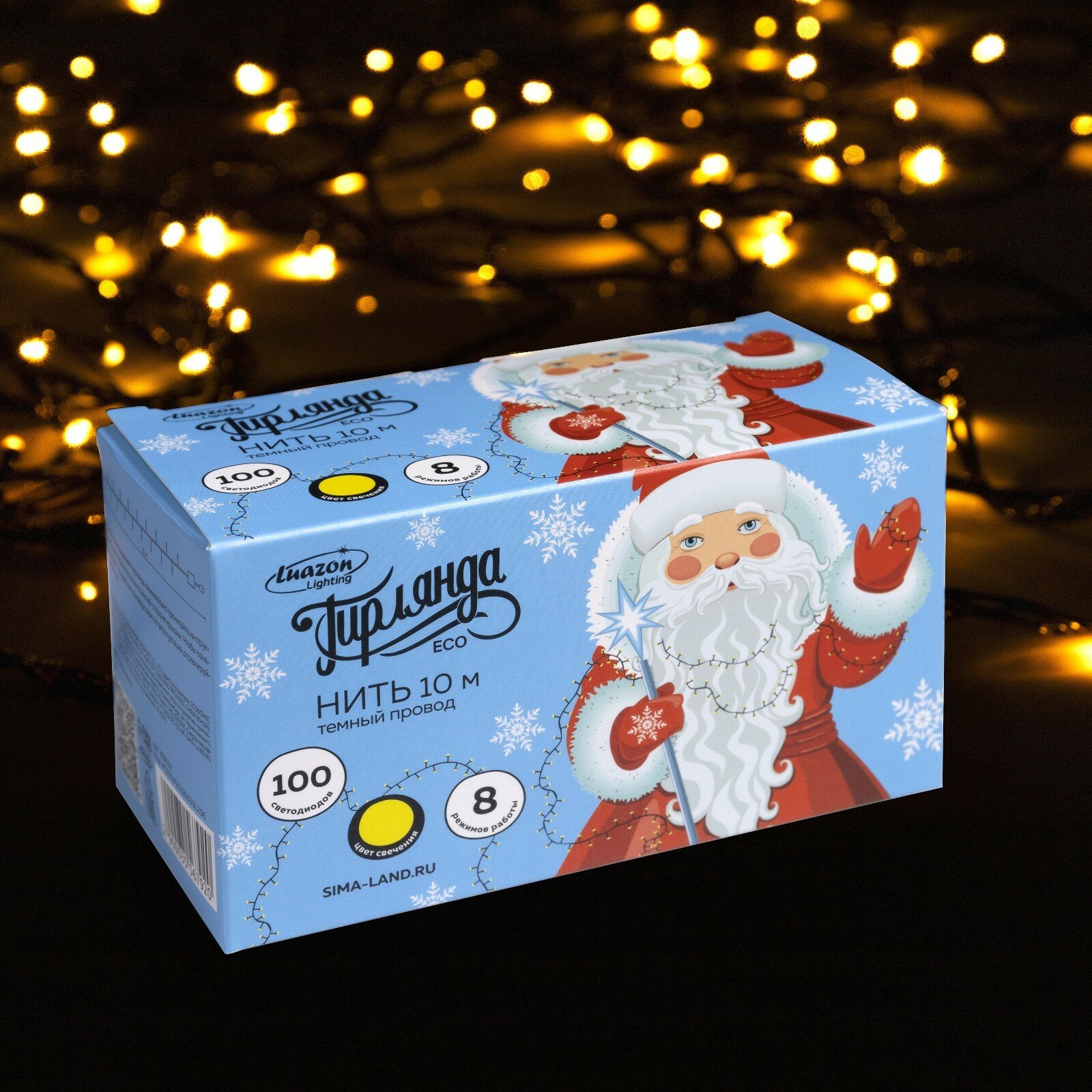 Купить Гирлянда «Нить» 10 м, IP20, тёмная нить, 100 LED, свечение жёлтое, 8 режимов, 220 В