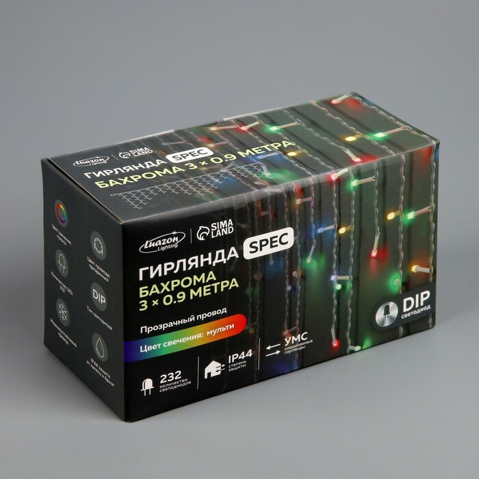 Купить Гирлянда «Бахрома» 3 × 0.9 м, IP44, УМС, прозрачная нить, 232 LED, свечение мульти, 220 В