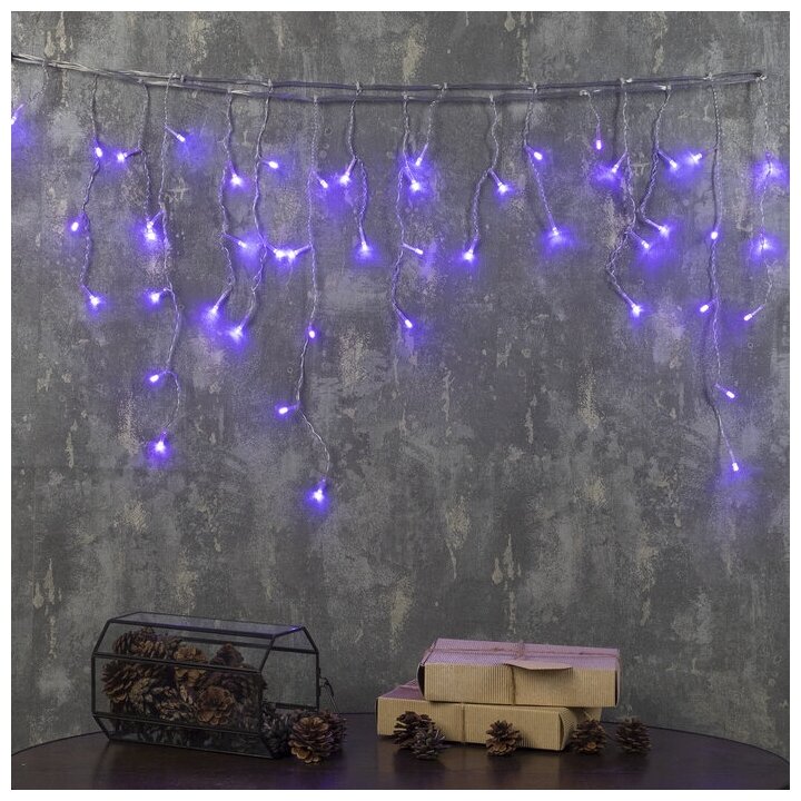 Гирлянда «Бахрома» 3 × 0.5 м, IP20, прозрачная нить, 80 LED, свечение фиолетовое, 8 режимов, 220 В