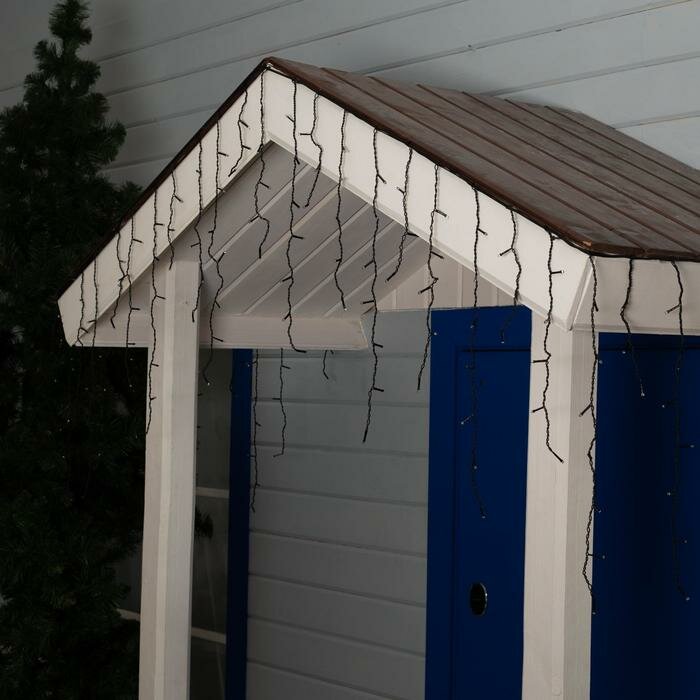 Гирлянда "Бахрома" 3 x 0.6 м, IP44, УМС, тёмная нить, 160 LED, свечение белое, 220 В