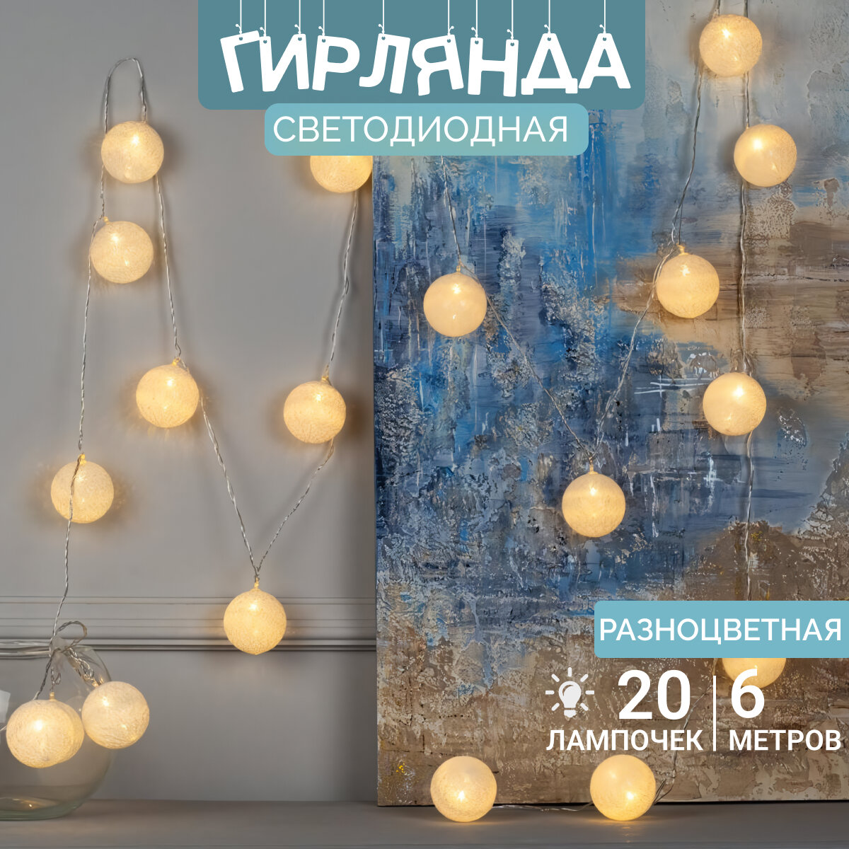 Электрогирлянда интерьерная Тайские фонарики, желтый, 20 ламп интересное: