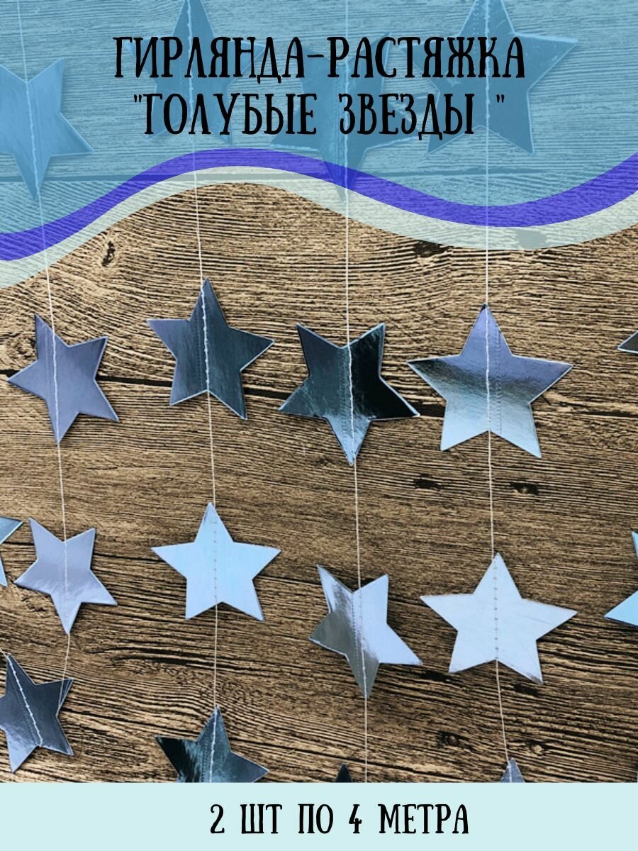СохранитьГирлянда растяжка бумажная, Звёзды, голубые, Нить 4 метра, 2 шт. интересное: