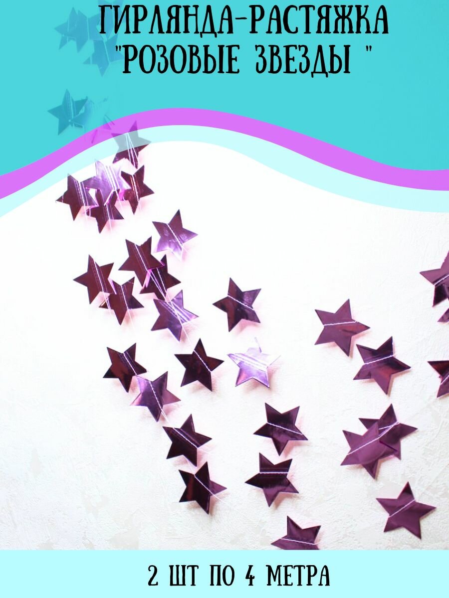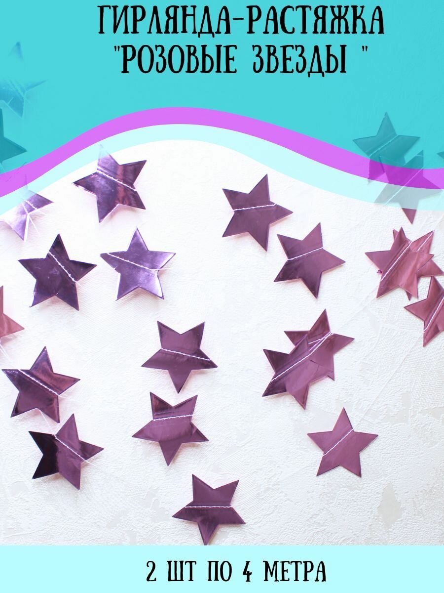 СохранитьГирлянда растяжка бумажная, Звёзды, Розовые, Нить 4 метра, 2 шт. интересное: