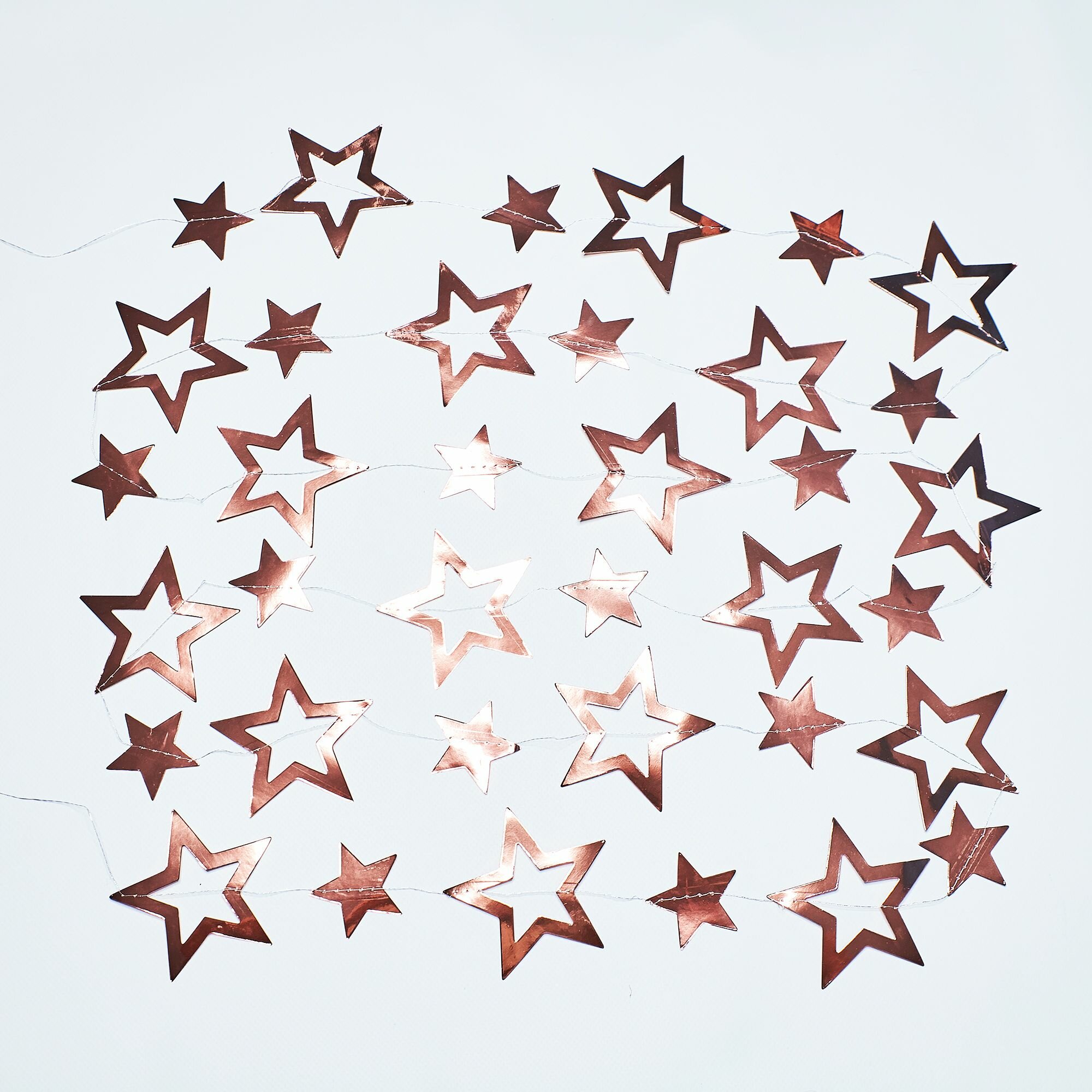 Купить Гирлянда растяжка Звёзды, Розовое золото, 400 см, 10 см*16 шт и 5 см*16 шт, 1 упак, Нить.