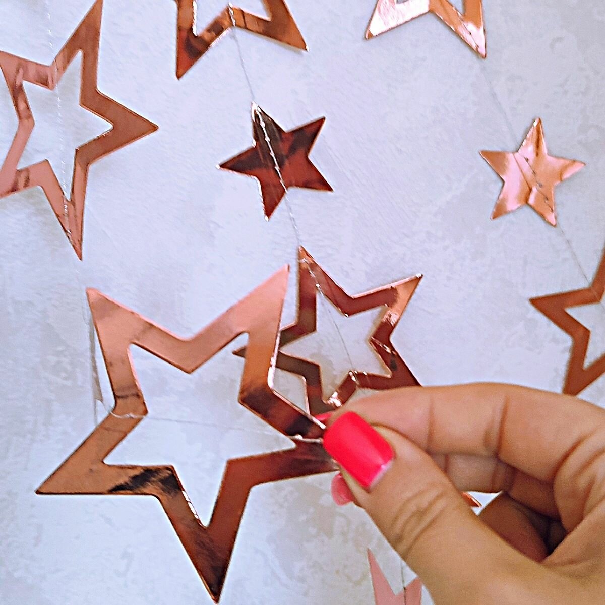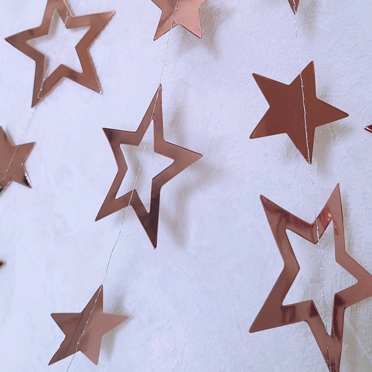 Гирлянда растяжка бумажная, Звёзды, Розовое золото, Нить 4 метра, 2 шт.