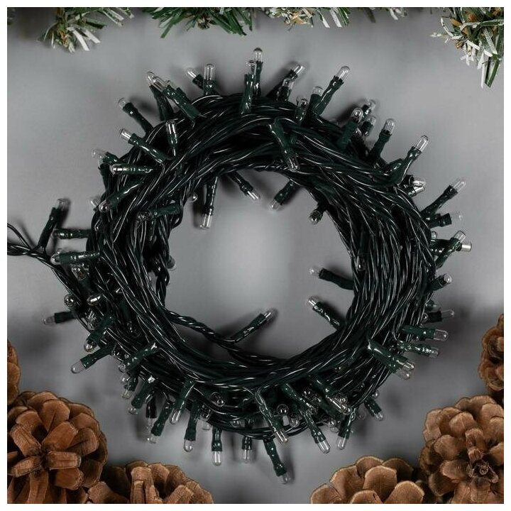 Купить Гирлянда «Нить» 7 м, IP20, тёмная нить, 180 ламп, свечение тёплое белое, 8 режимов, 220 В, 187157