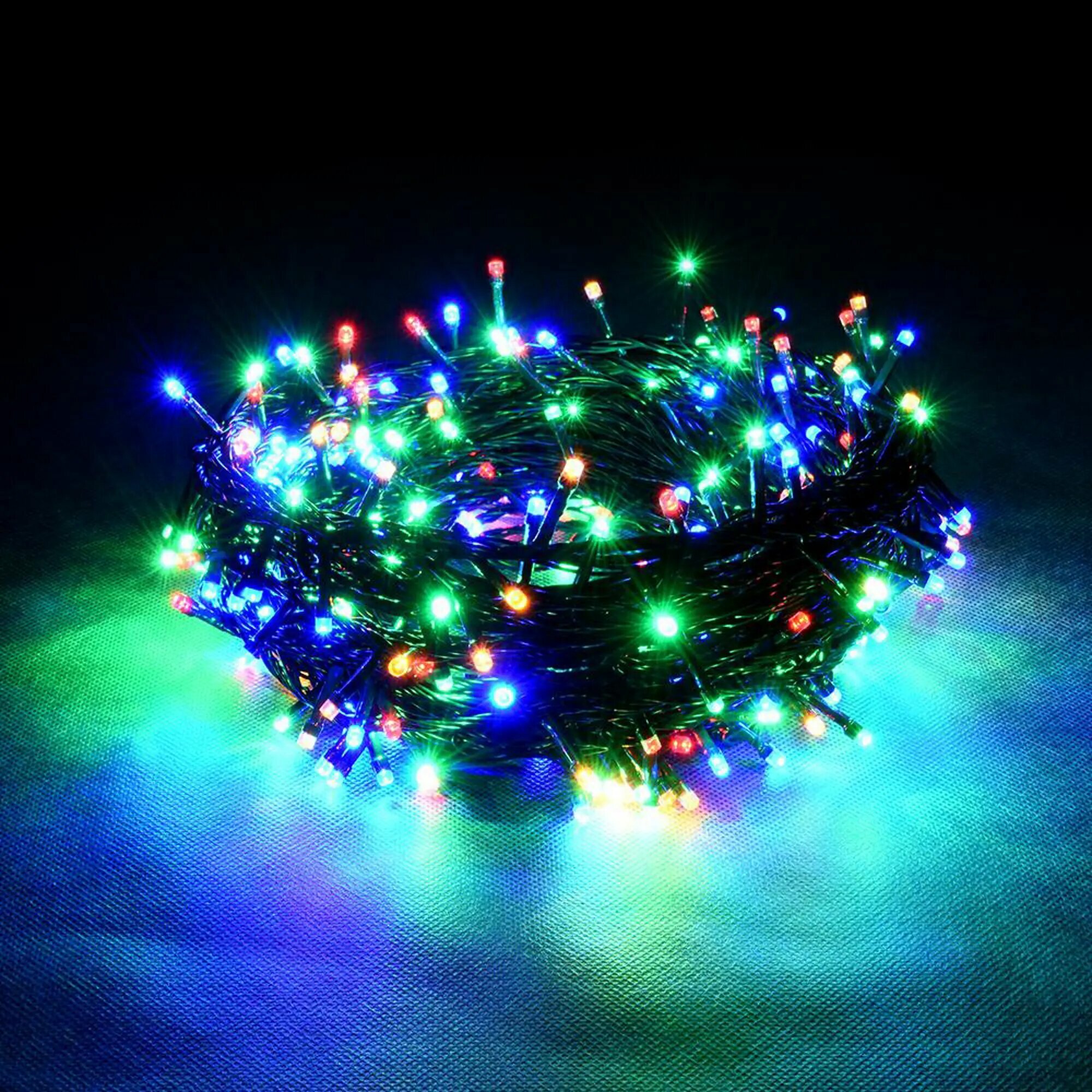 Электрогирлянда "Нить" 100 разноцветных LED ламп, контроллер 8 режимов, зеленый провод, 10 м, 220 v VEGAS