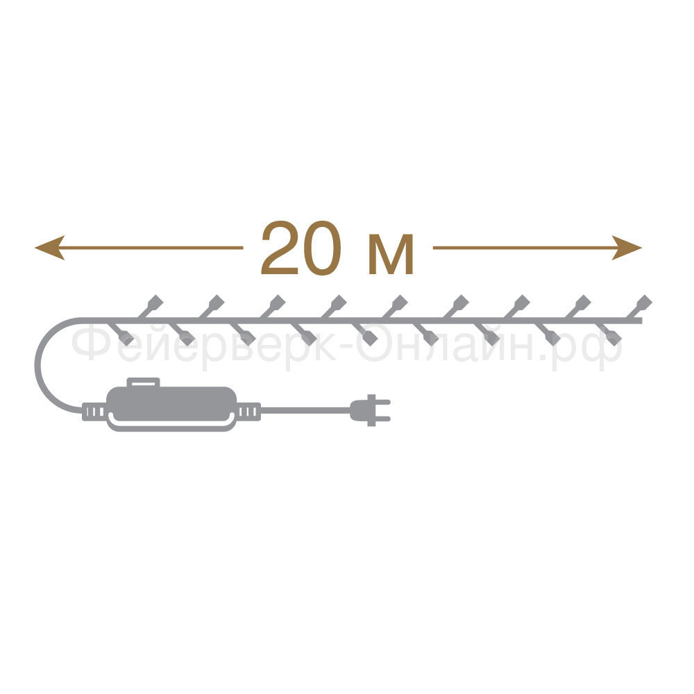 VEGAS Электрогирлянда "Нить" 200 теплых LED ламп, контроллер 8 режимов, зеленый провод, 20 м, 220 v