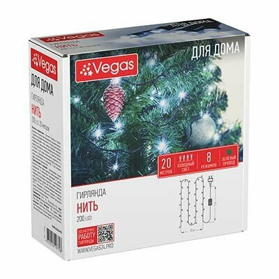 СохранитьVEGAS Электрогирлянда "Нить" 200 холодных LED ламп, контроллер 8 режимов, зеленый провод, 20 м, 220 v интересное: