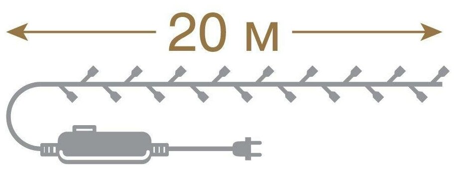 VEGAS Электрогирлянда "Нить" 200 теплых LED ламп, контроллер 8 режимов, зеленый провод, 20 м, 220 v