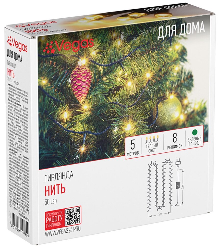 Сохранить5м. Электрогирлянда 'Нить' с контроллером (теплый) 50LED IP20 Vegas 55059 интересное: