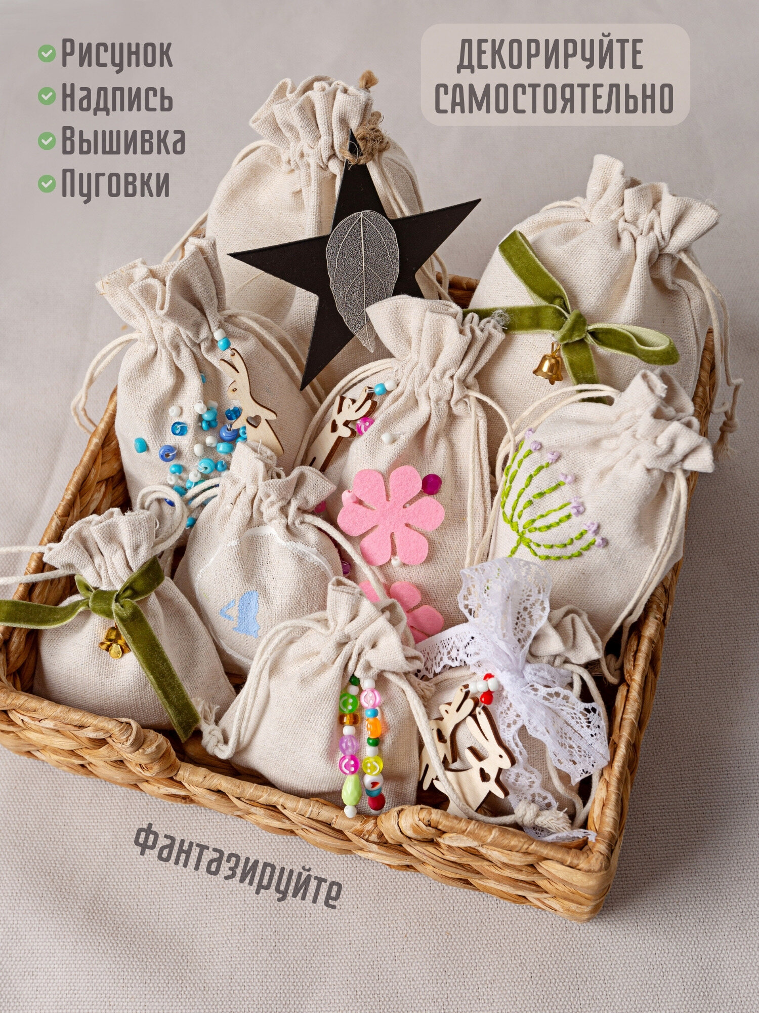 Льняной Мешочек, Набор из 10 штук, Размер 10Х8, Упаковка для украшений, подарков, саше. интересное: