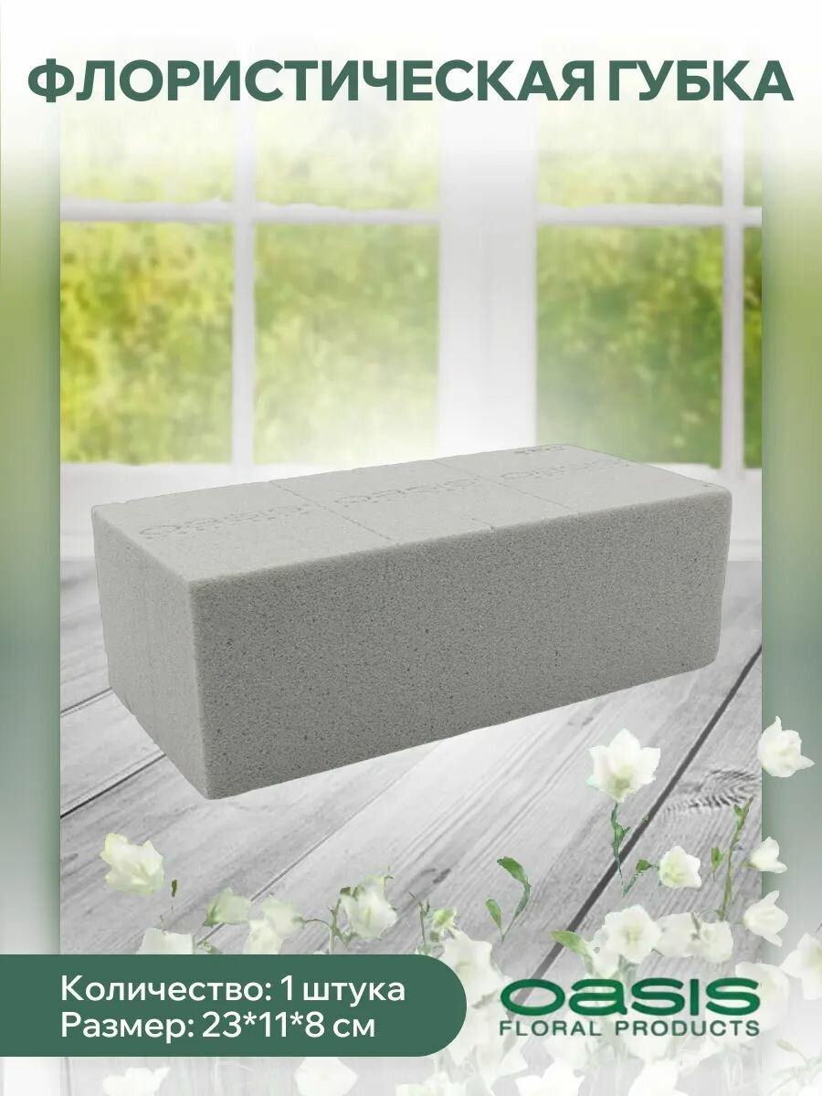 Губка флористическая Оазис Биосек для сухих растений и искусственных цветов, серая, 23х11х8 см интересное: