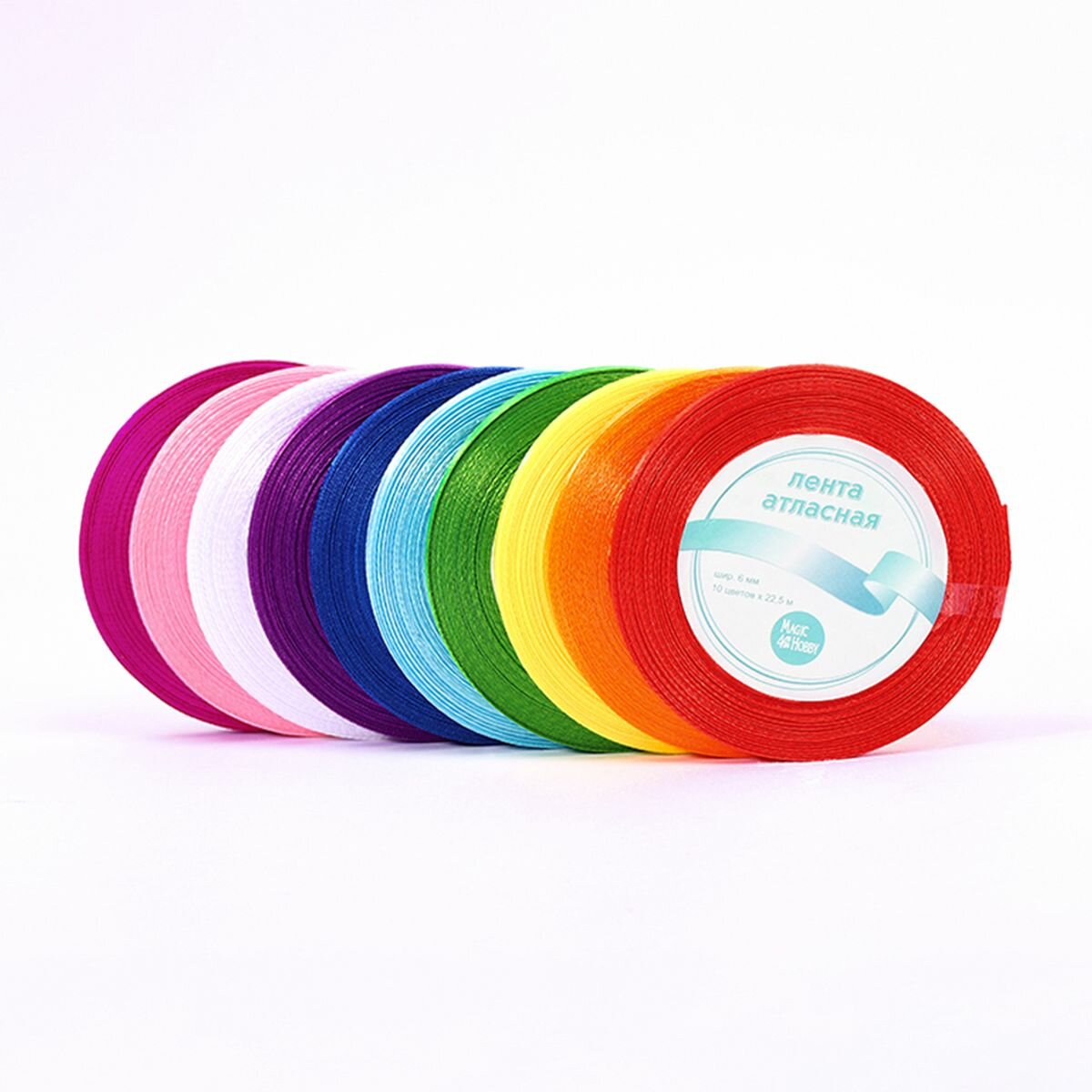 Купить Набор атласных лент упаковочная для подарков, шитья и рукоделия 6мм Радужный Magic4Hobby 10шт*22,5м (±1м)