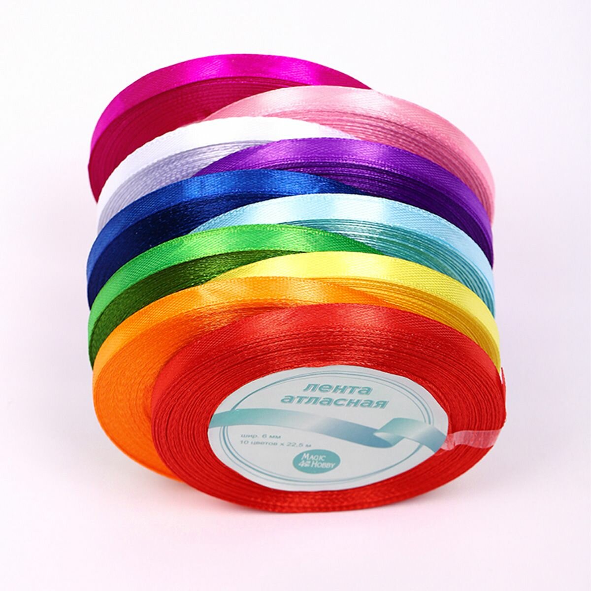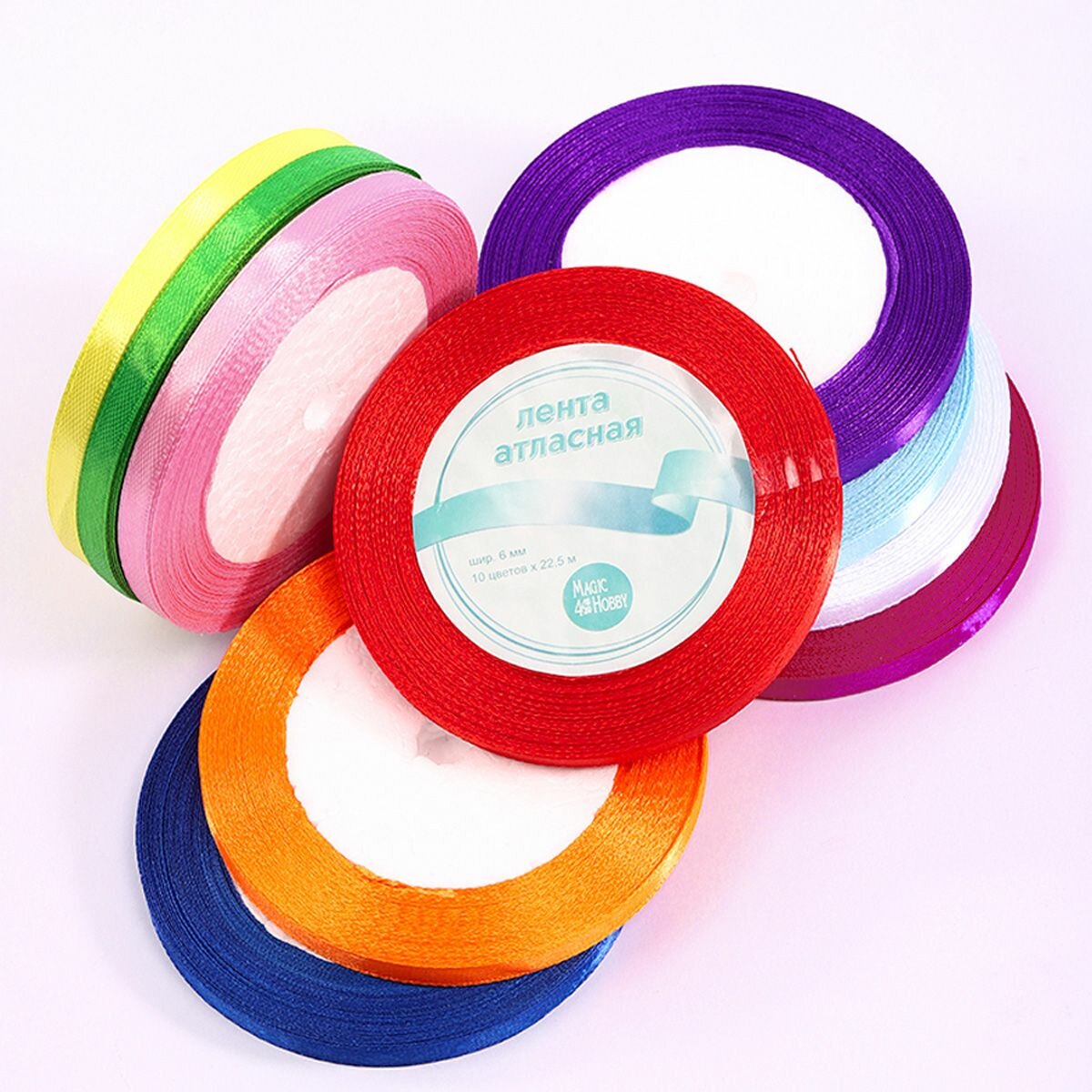 СохранитьНабор атласных лент упаковочная для подарков, шитья и рукоделия 6мм Радужный Magic4Hobby 10шт*22,5м (±1м) интересное: