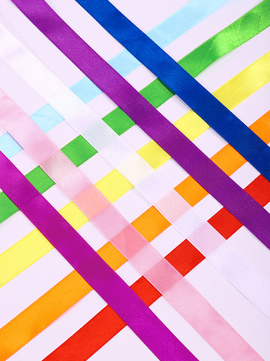 Набор атласных лент упаковочная для подарков, шитья и рукоделия 6мм Радужный Magic4Hobby 10шт*22,5м (±1м)