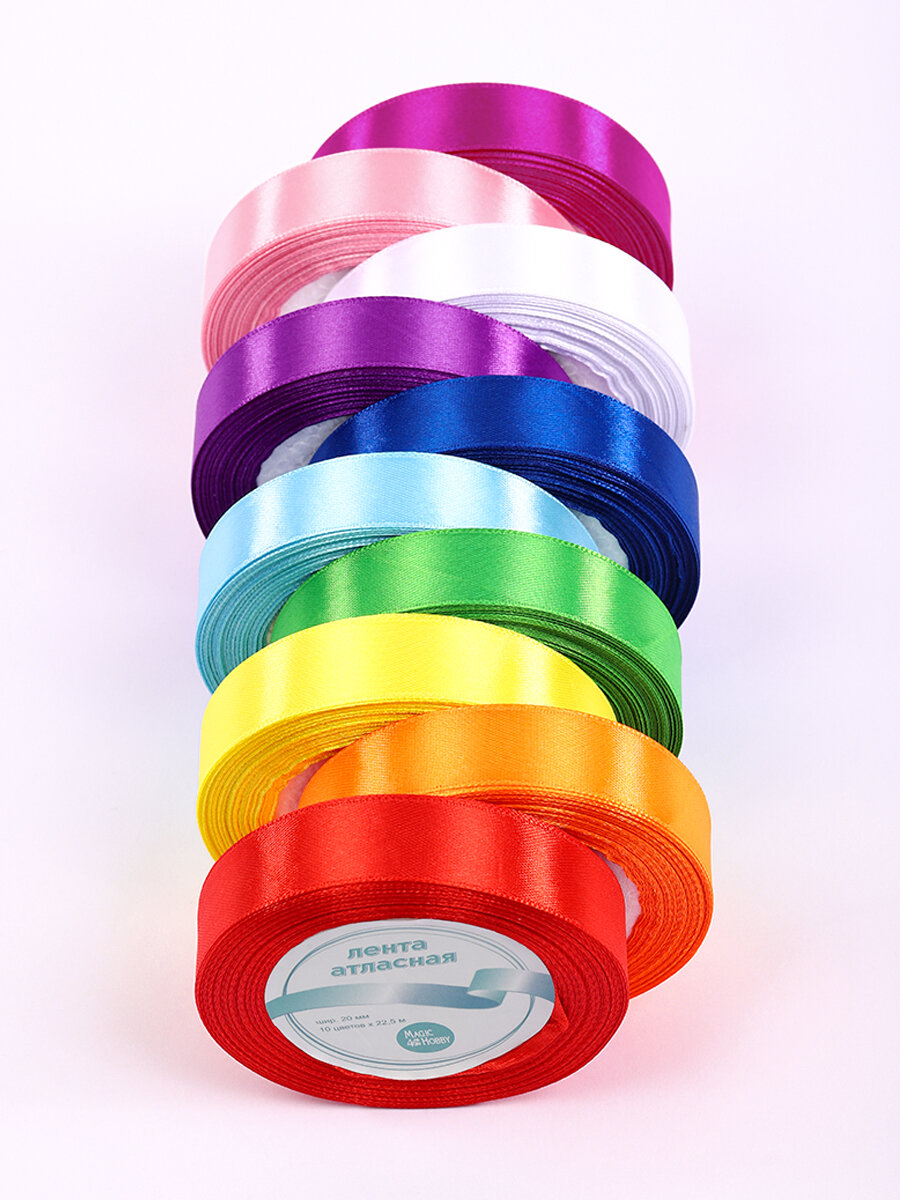 СохранитьНабор атласных лент упаковочная для подарков, шитья и рукоделия 20мм Радужный2 Magic4Hobby 10шт*22,5м (±1м) интересное: