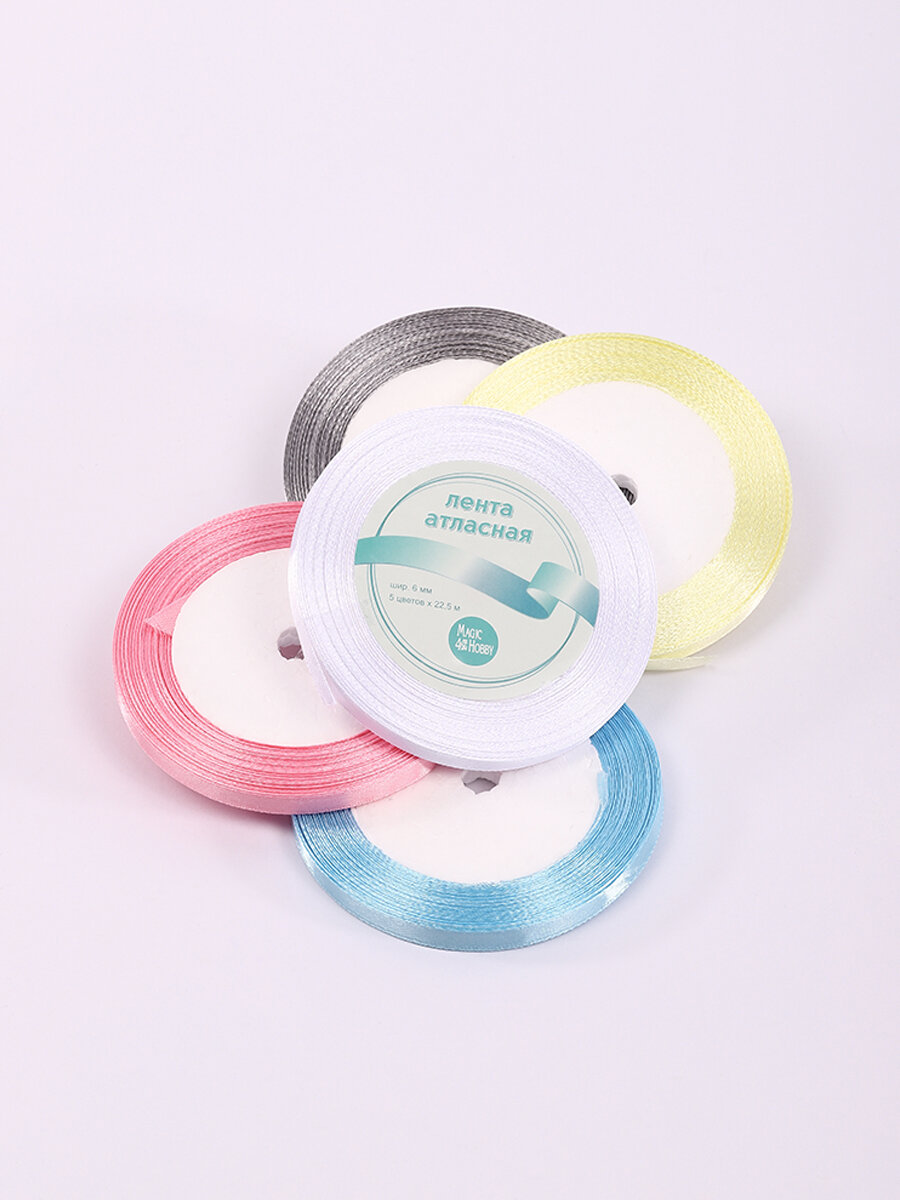 Купить Набор атласных лент упаковочная для подарков, шитья и рукоделия 6мм Пастель1 Magic4Hobby 5шт*22,5м (±1м)