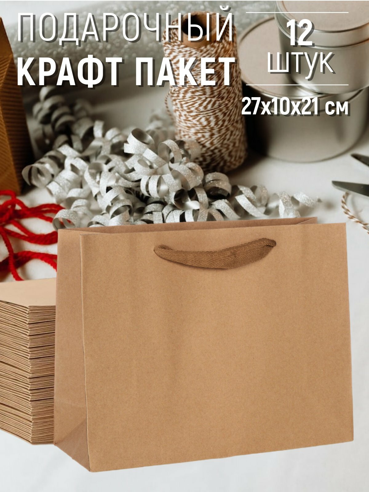 Набор пакетов подарочных 27х10х21 см крафт - 12 штук интересное: