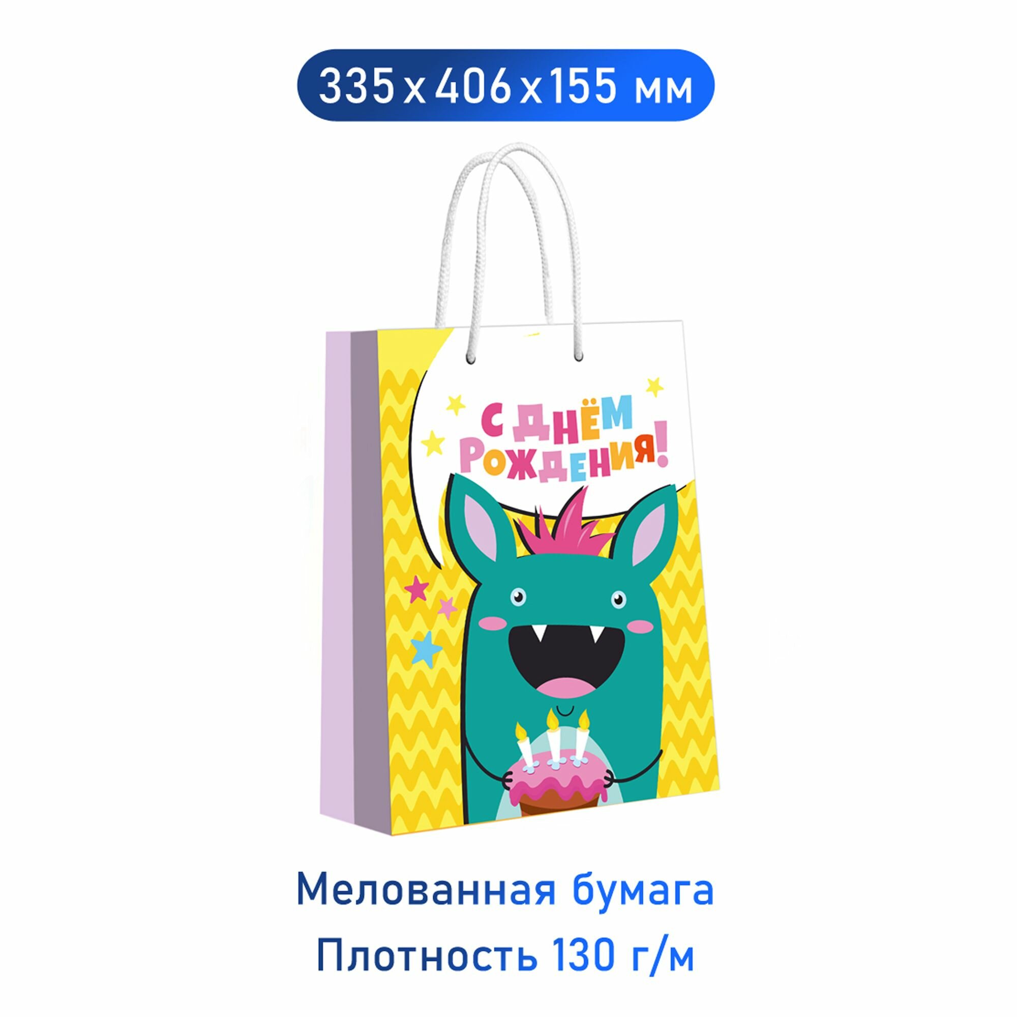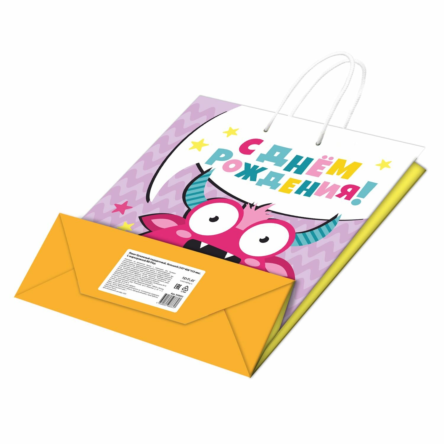 Купить Пакет подарочный Монстрики "С Днем Рождения!", 335 х 406 х 155 мм, ND Play