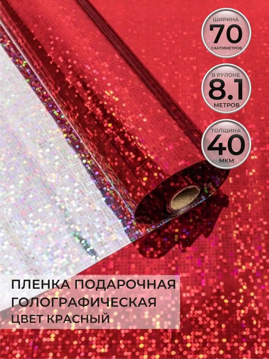Купить Упаковочная бумага для подарков и цветов от бренда Типография "ТМТ", в рулоне 0,7 х8,1м, голография, цвет красный