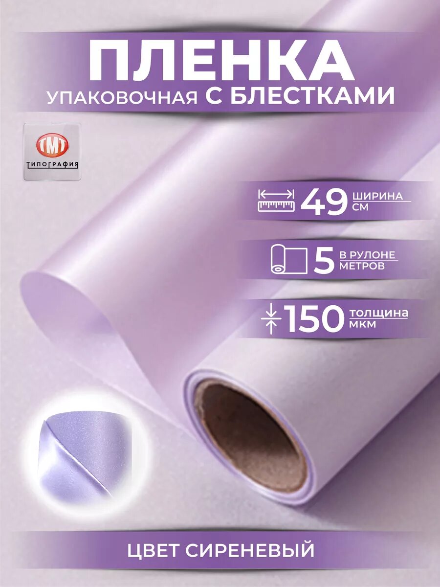 СохранитьУпаковочная бумага для цветов и букетов пленка с блестками от типографии "ТМТ, цвет сиреневый интересное: