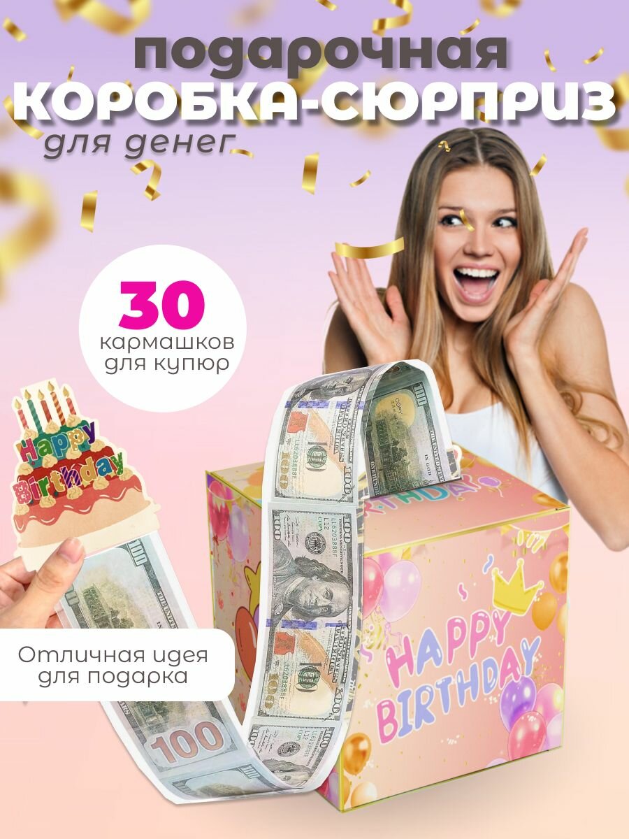 Купить Подарочная коробка сюрприз с ВАУ-эффектом, с днем рождения, розовая
