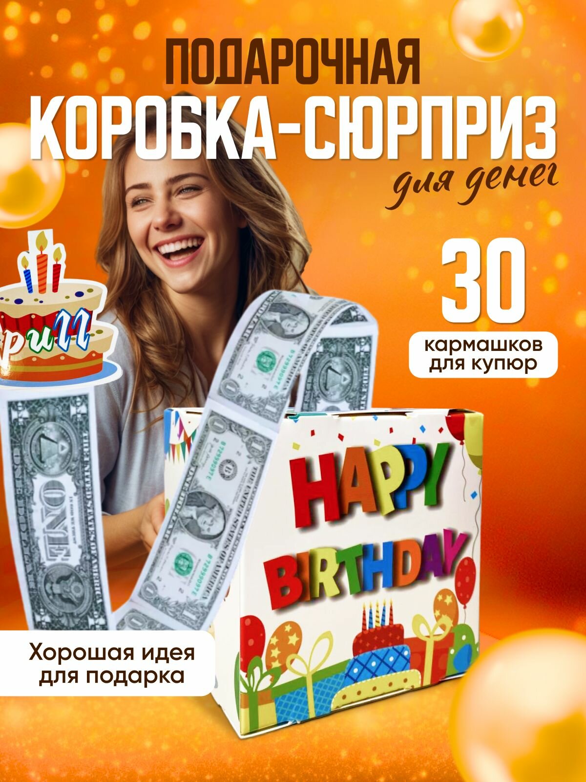 Подарочная коробка сюрприз с ВАУ-эффектом, с днем рождения, розовая