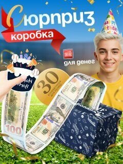 Подарочная коробка сюрприз с ВАУ-эффектом, с днем рождения, синяя
